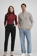 Men’s Long Sleeve Henley Shirt Ribbed Cotton Regular Fit