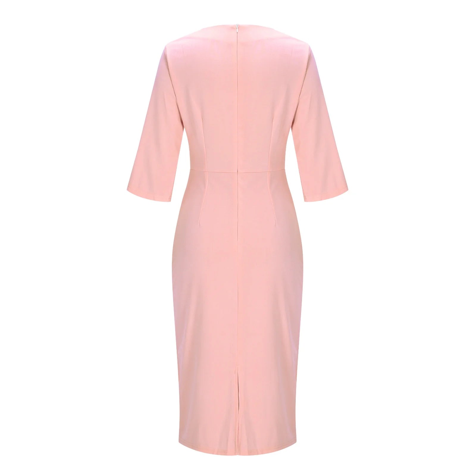 Das Barclay & Bloom Damen Midi Bleistiftkleid ist aus einem glatten, dehnbaren Stoff gefertigt und bietet eine maßgeschneiderte Silhouette. Ausgestattet mit einem Reißverschluss hinten, 3/4-Ärmeln und dekorativen Perlenknopf-Akzenten an den Manschetten, bietet dieses Kleid eine raffinierte Schlichtheit, die für Arbeit oder formelle Anlässe geeignet ist. Das Clara Kleid verfügt über einen Rückenschlitz für mehr Bewegungsfreiheit.