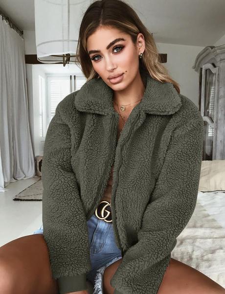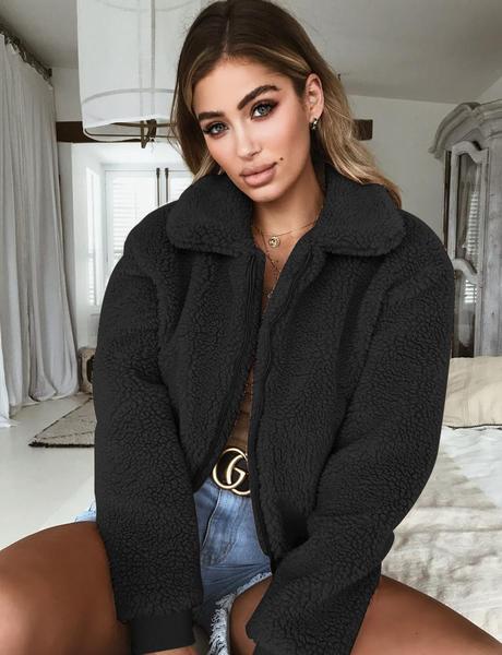 Lina Damen Teddyjacke – Lässiger kurzer Mantel aus Kunst-Lammfell