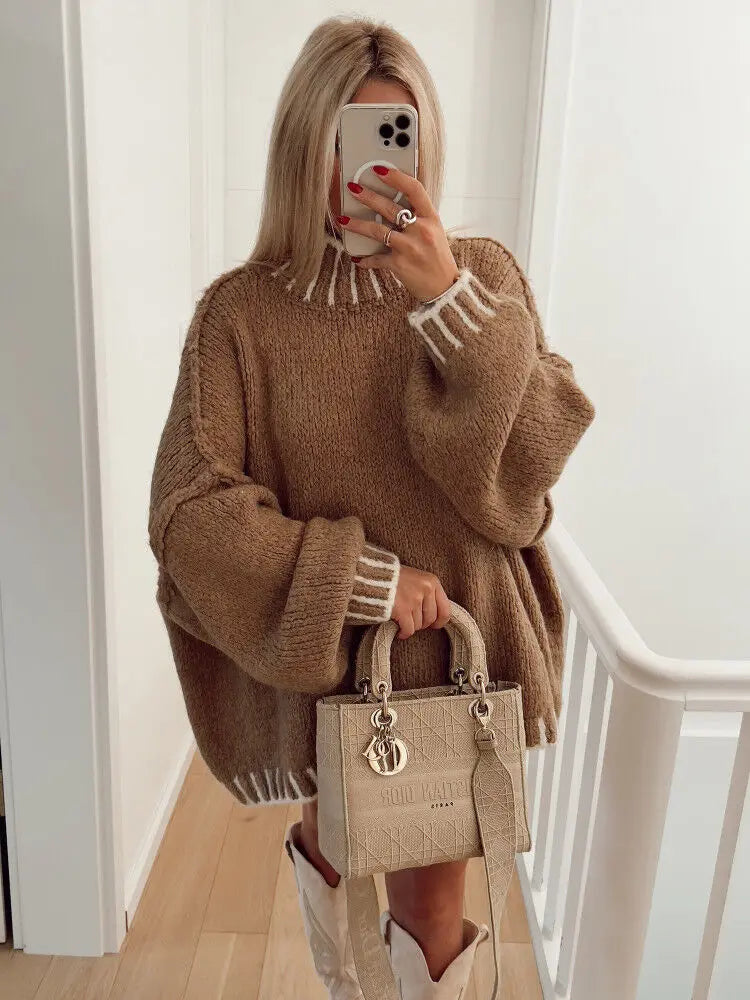 Der Lindsey-Pullover verbindet eine entspannte Oversized-Passform mit kontrastierenden Kantenverzierungen für einen modernen Look. Hergestellt aus weichem Strickstoff bietet dieser Pullover Komfort und einen sauberen, stilvollen Abschluss.