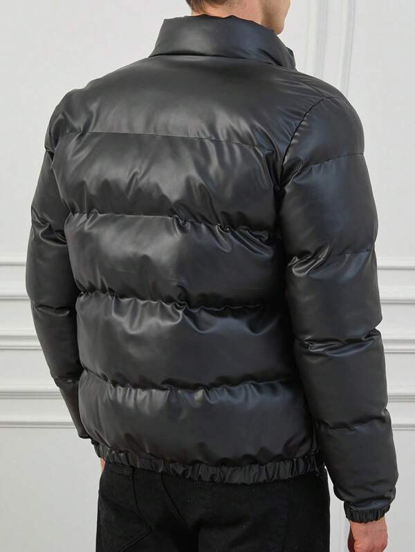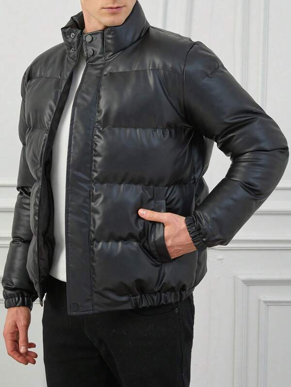 Die Damian Herren-Steppjacke ist ein gesteppter Wintermantel mit einer Außenhülle aus Kunstleder, der sowohl Isolierung als auch ein modernes Aussehen bietet. Mit gepolsterter Füllung für Wärme ausgestattet, verfügt diese Jacke über einen hohen Kragen, Reißverschluss und Druckknopfverschluss sowie elastische Bündchen für zusätzlichen Schutz gegen Kälte. Die elegante schwarze Oberfläche macht die Damian Jacke vielseitig und leicht kombinierbar mit legeren oder Büro-Outfits. Geeignet für Winter und Übergangsjahreszeiten ist sie eine praktische Ergänzung für die Herrenoberbekleidung.