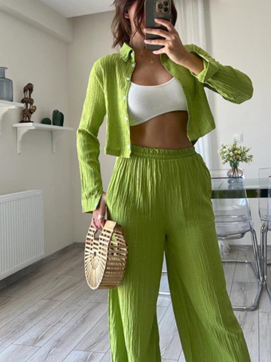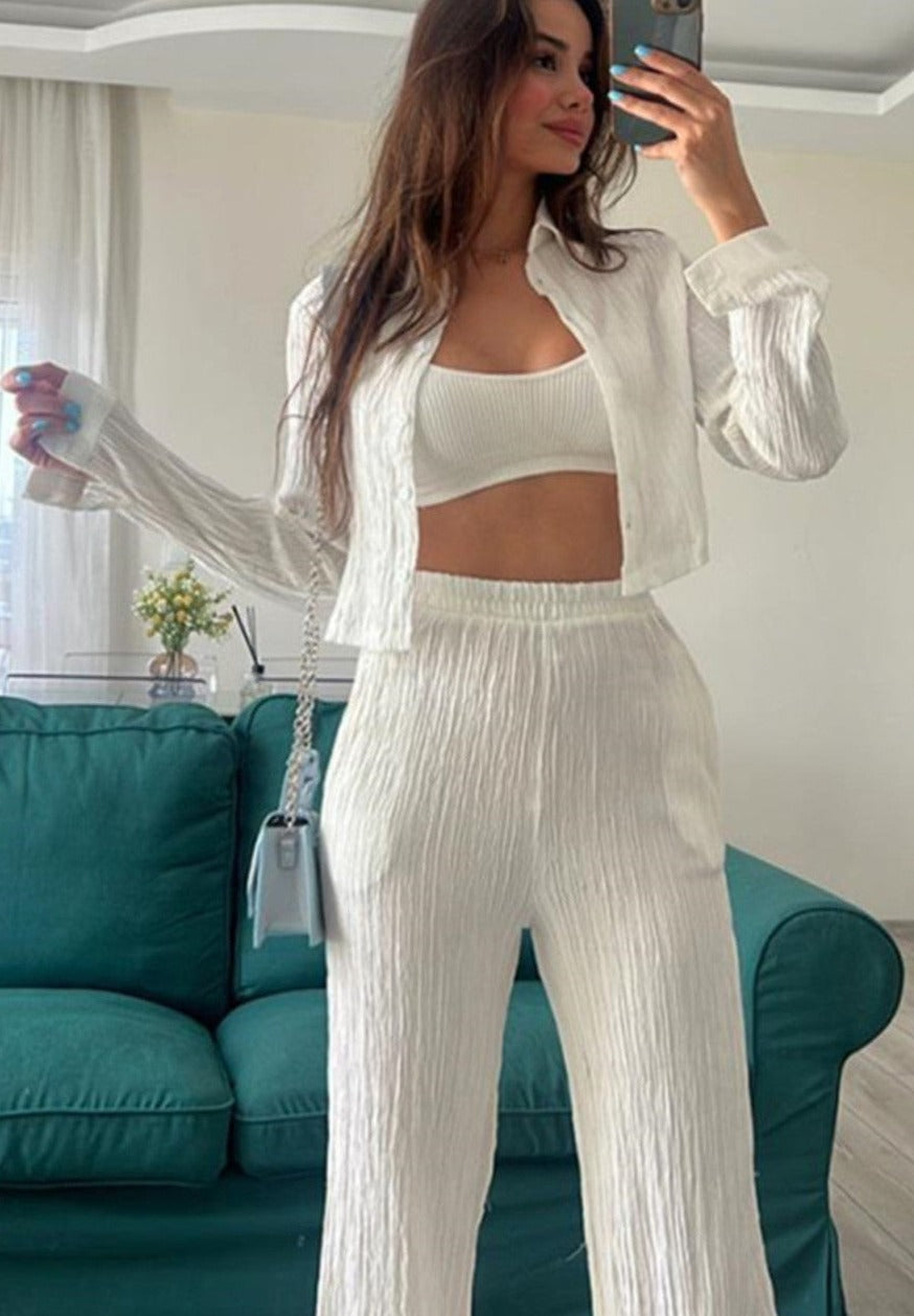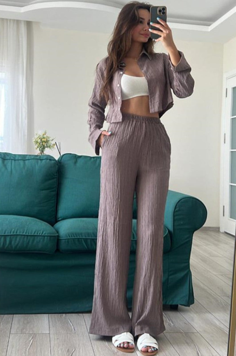 Das Sophia Stylish Long-Sleeved Set vereint Komfort und Eleganz in einem mühelos modischen Outfit. Mit einem passenden langärmeligen Oberteil und Hosen ist dieses Set perfekt für legere Tage, Reisen oder entspannte Zusammenkünfte. Mit seiner modernen Silhouette und dem weichen Stoff hält das Sophia Set Sie gepflegt aussehen, ohne auf Komfort zu verzichten.