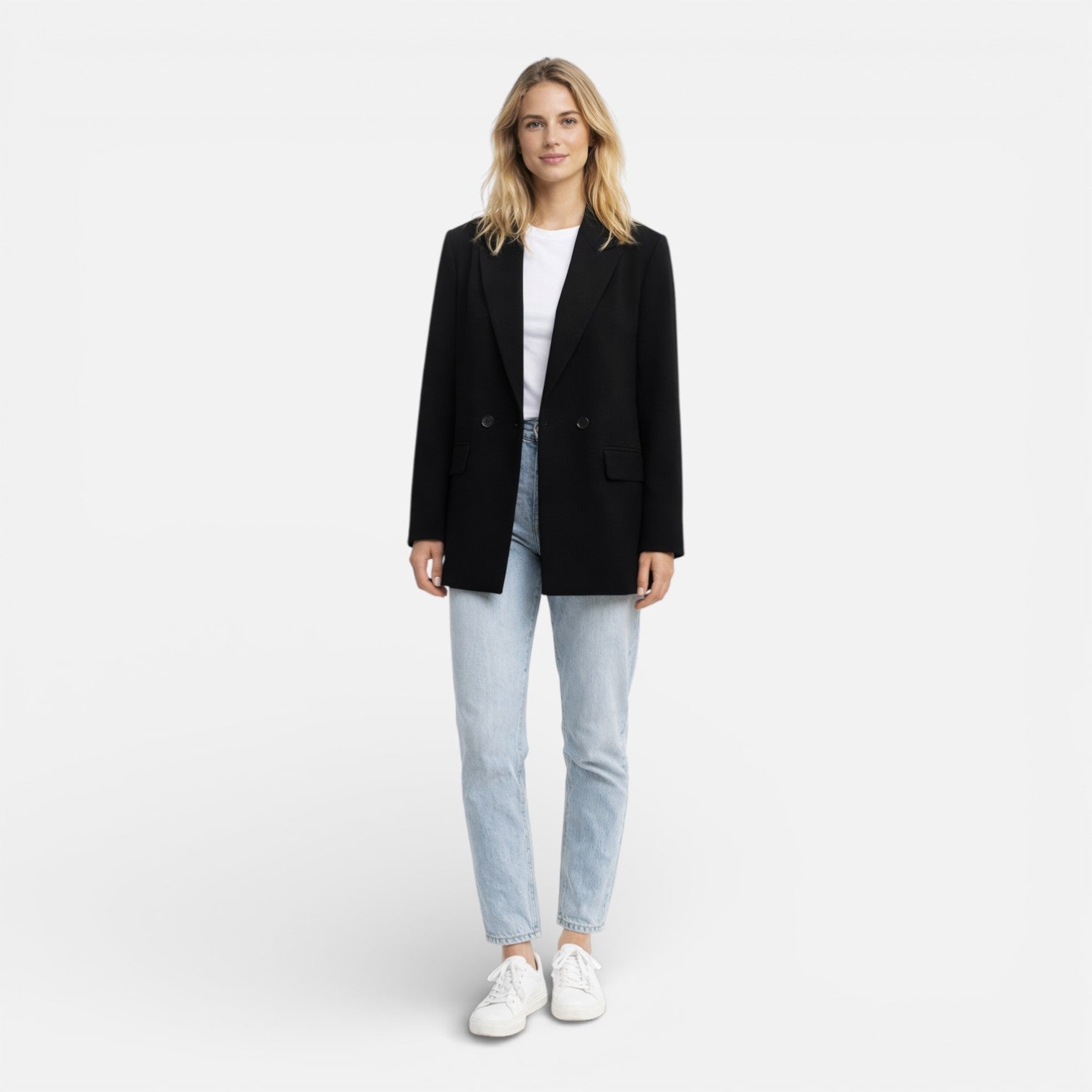 Damen Zweireihiger Blazer Strukturierte Klassische Passform Jacke