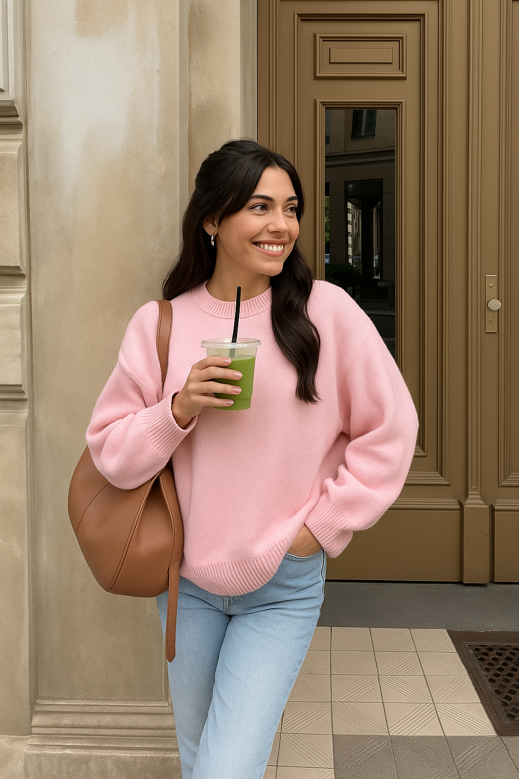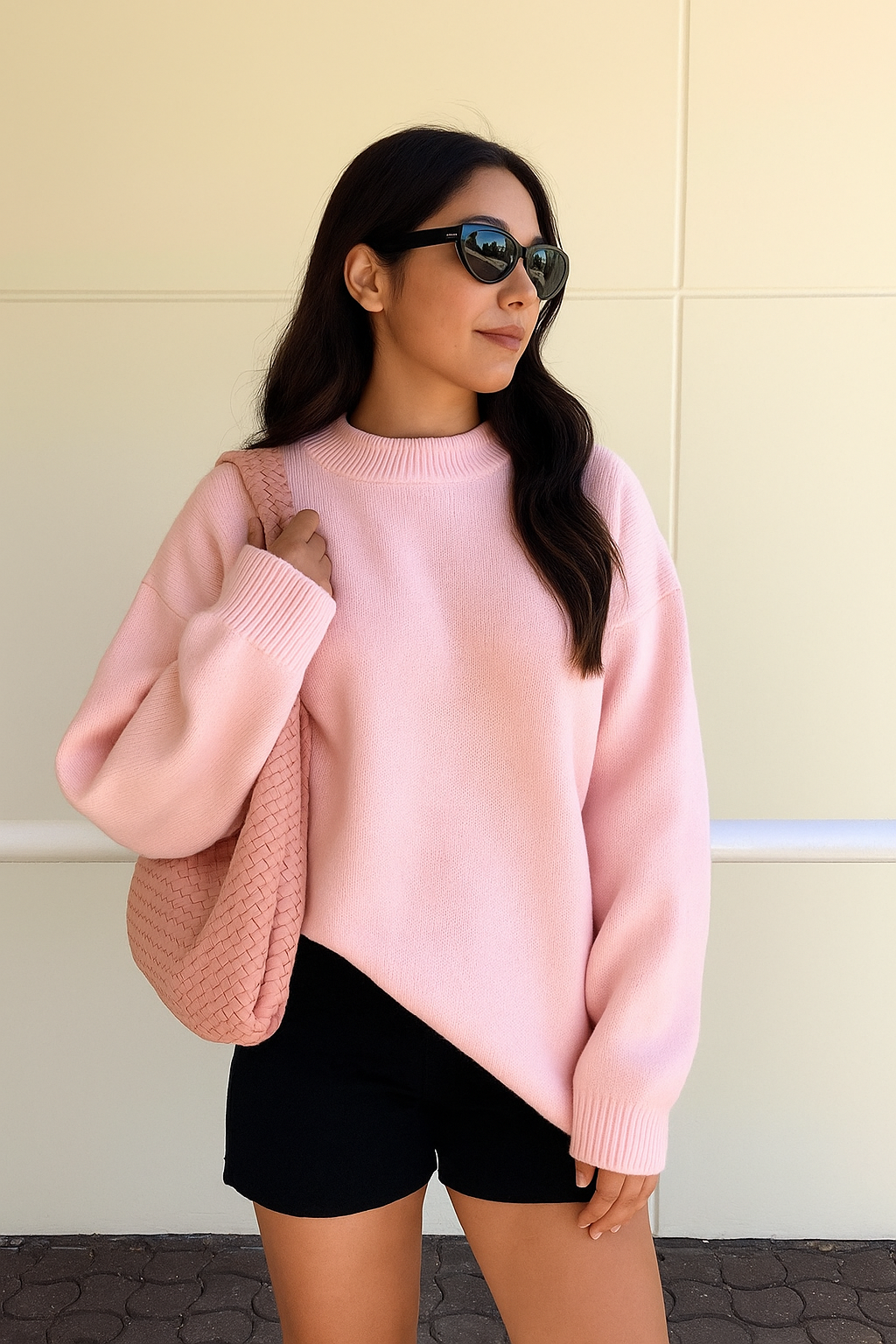 Yara - Damen rosa Rundhalsausschnitt Pullover