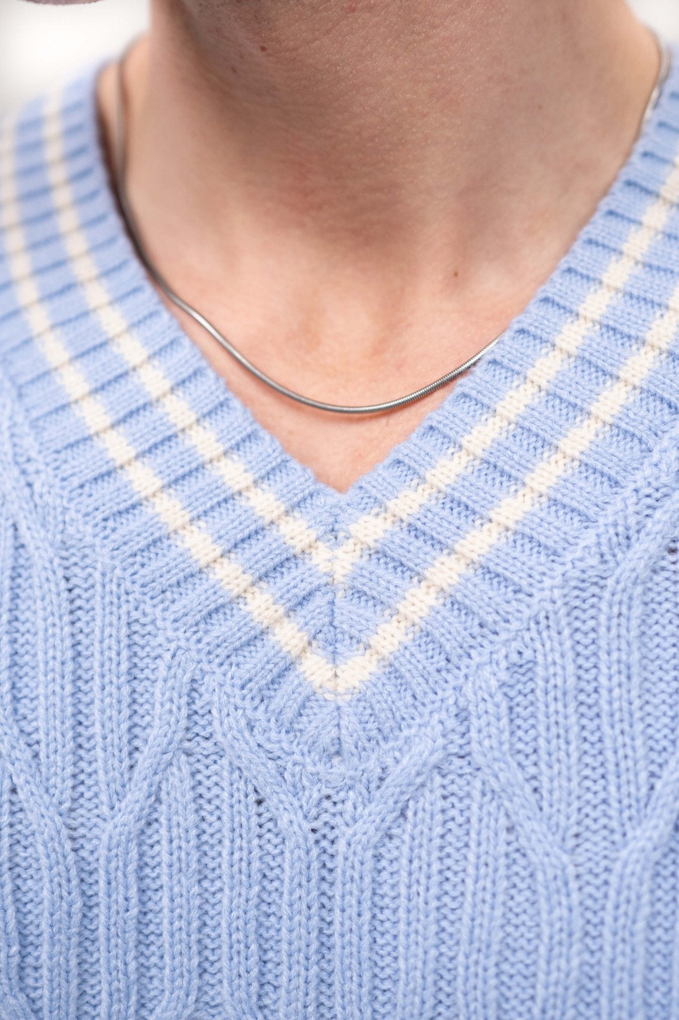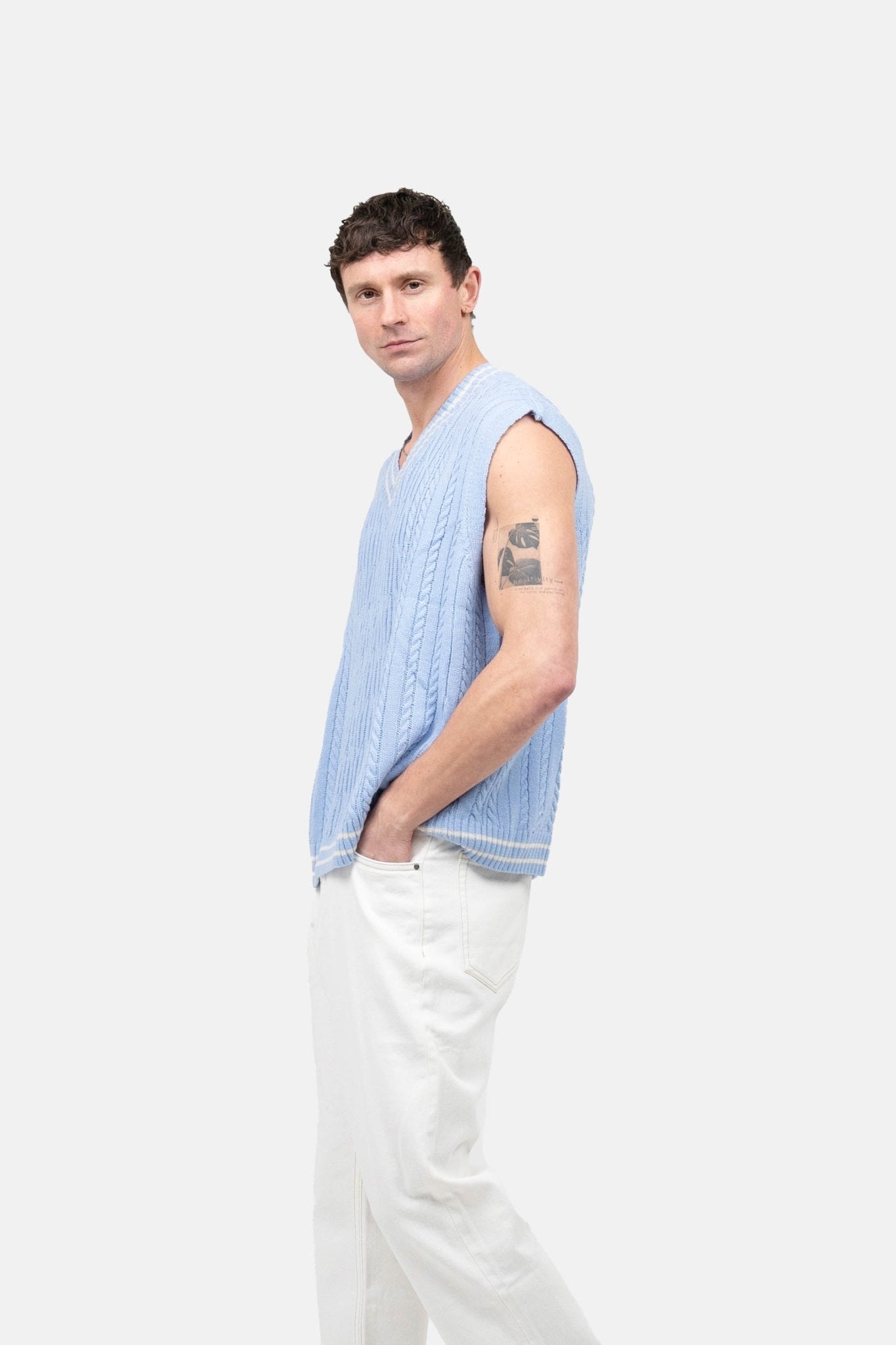 Barclay & Bloom - Men's Cable Knitted Tank Top Light Blue