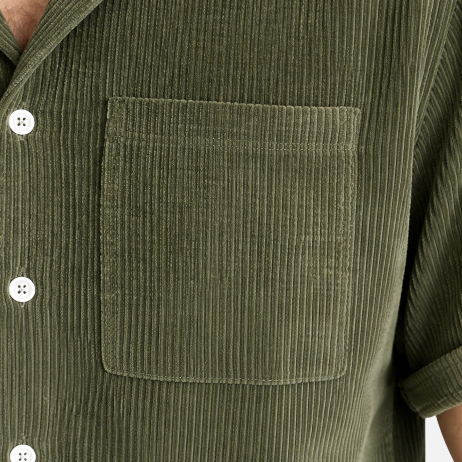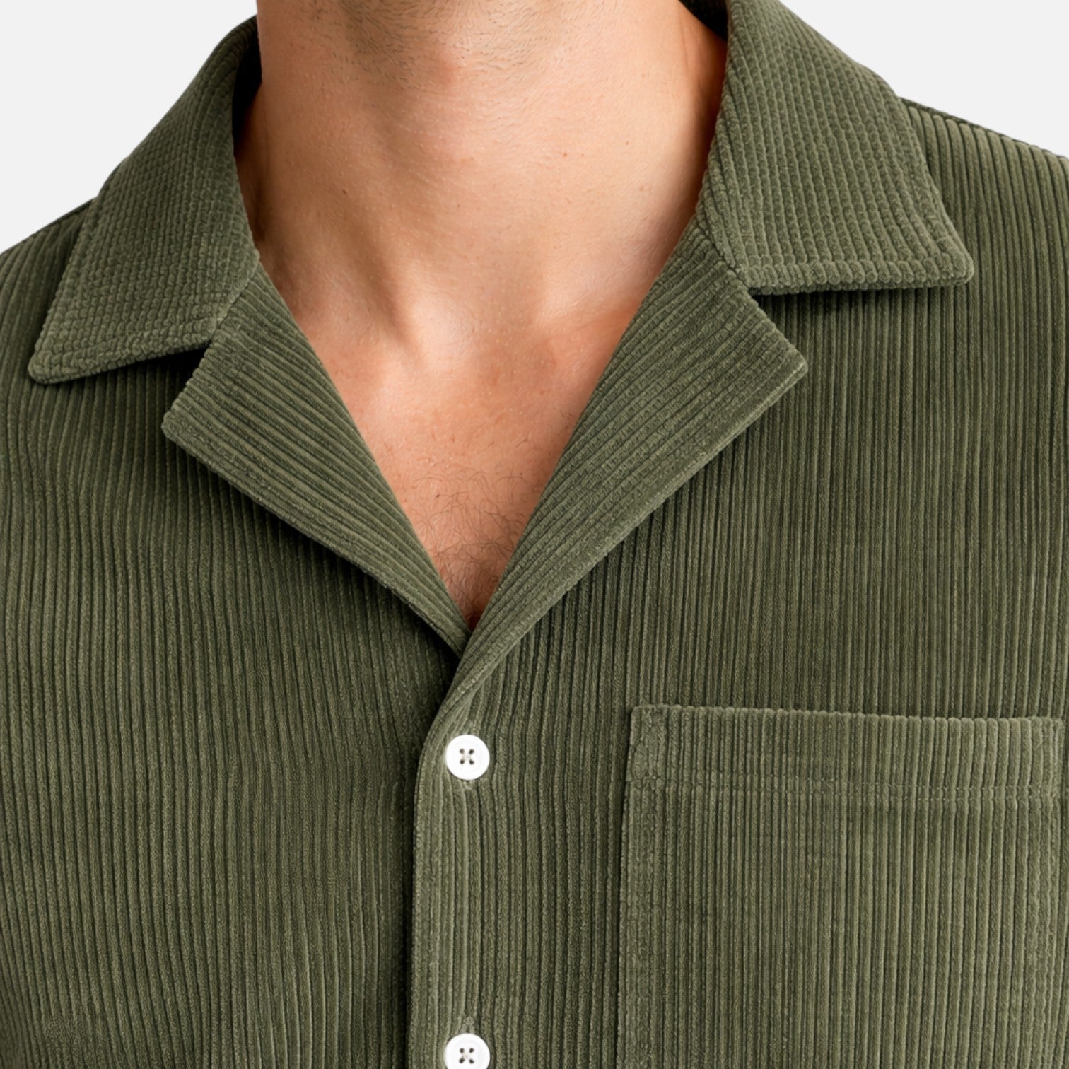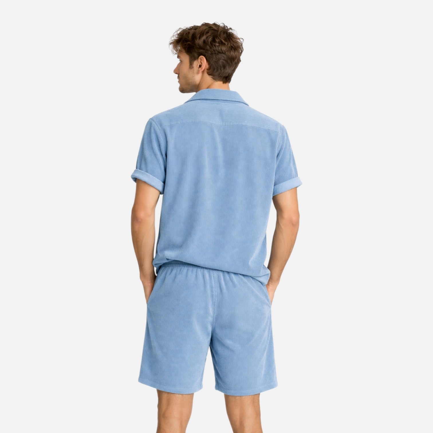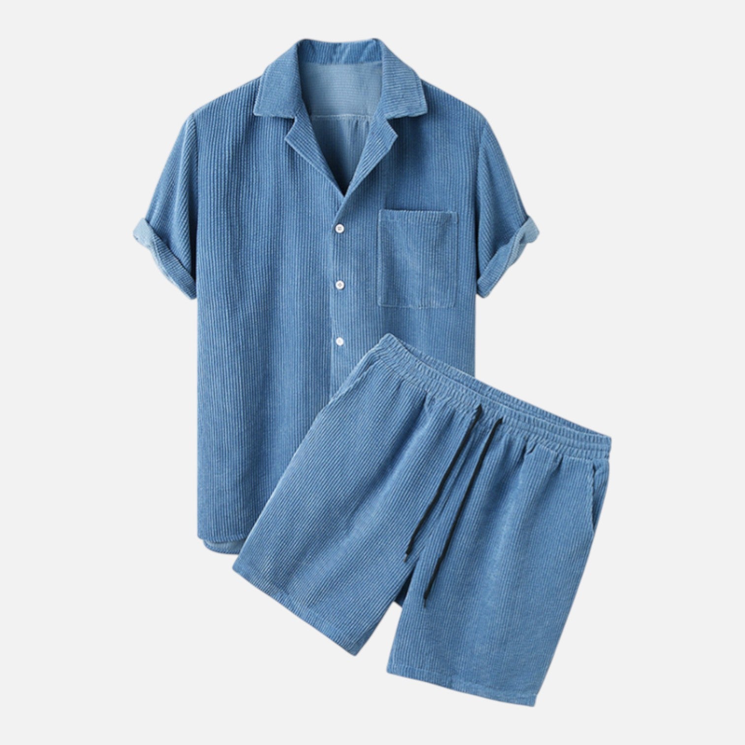 Men’s Corduroy Summer Set Shirt and Shorts Matching Outfit