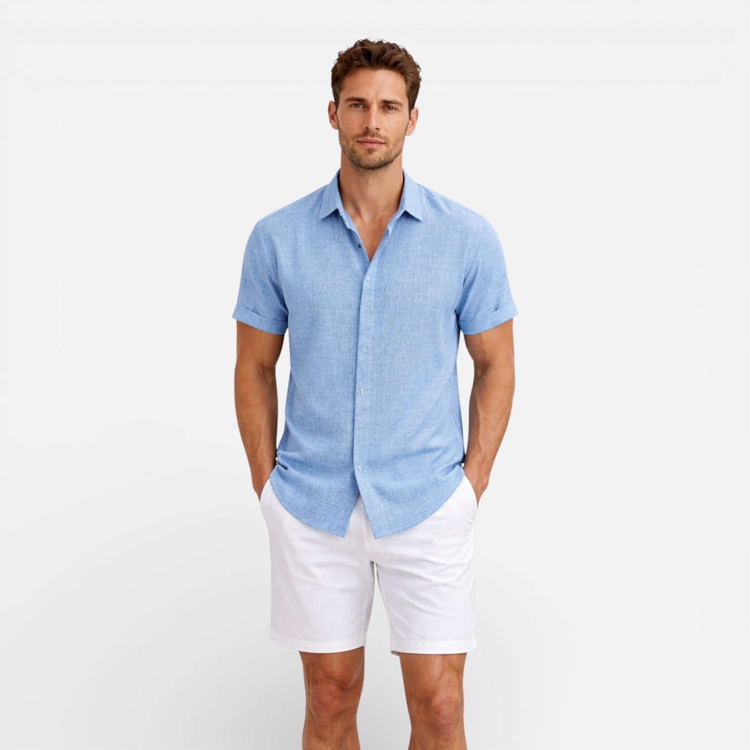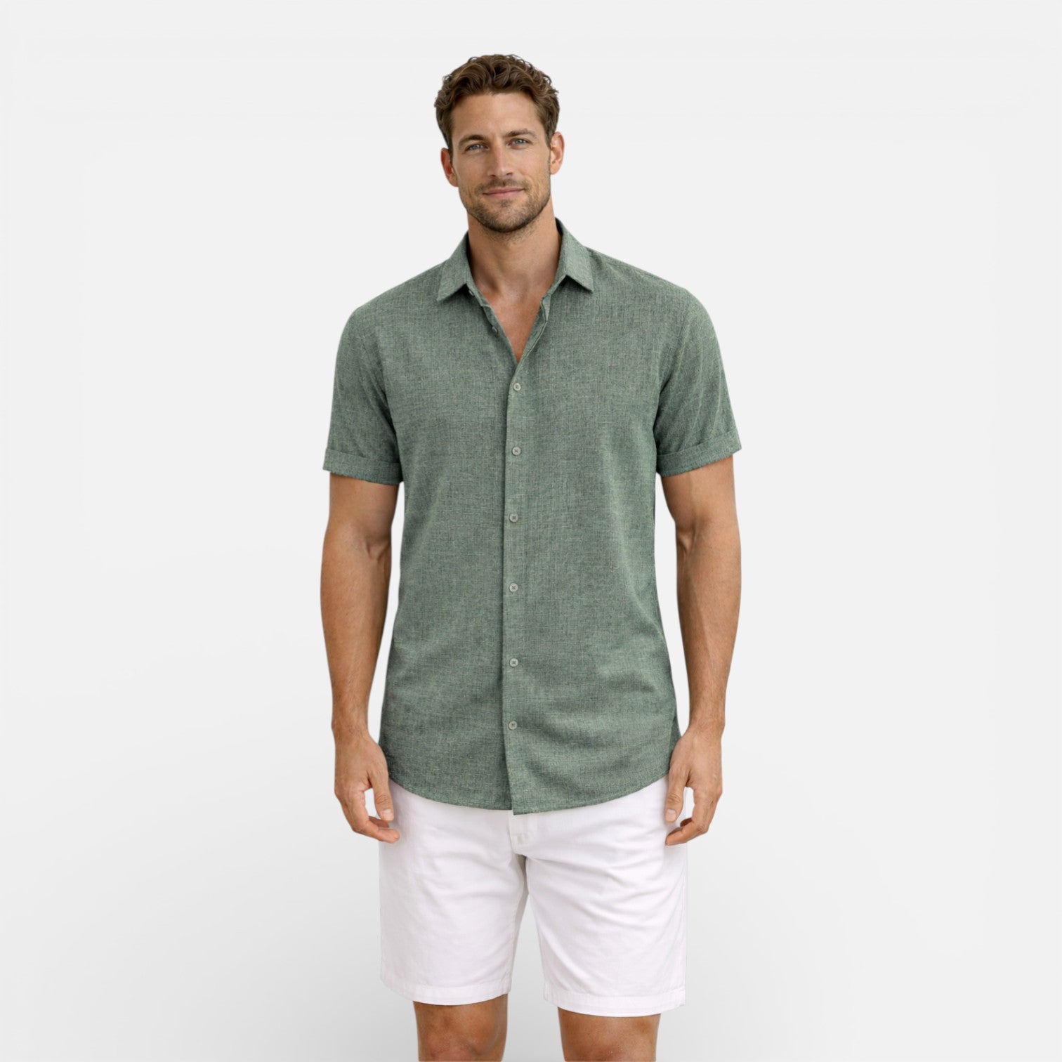 Men’s Linen Cotton Blend Button Up Shirt Breathable Summer Fit