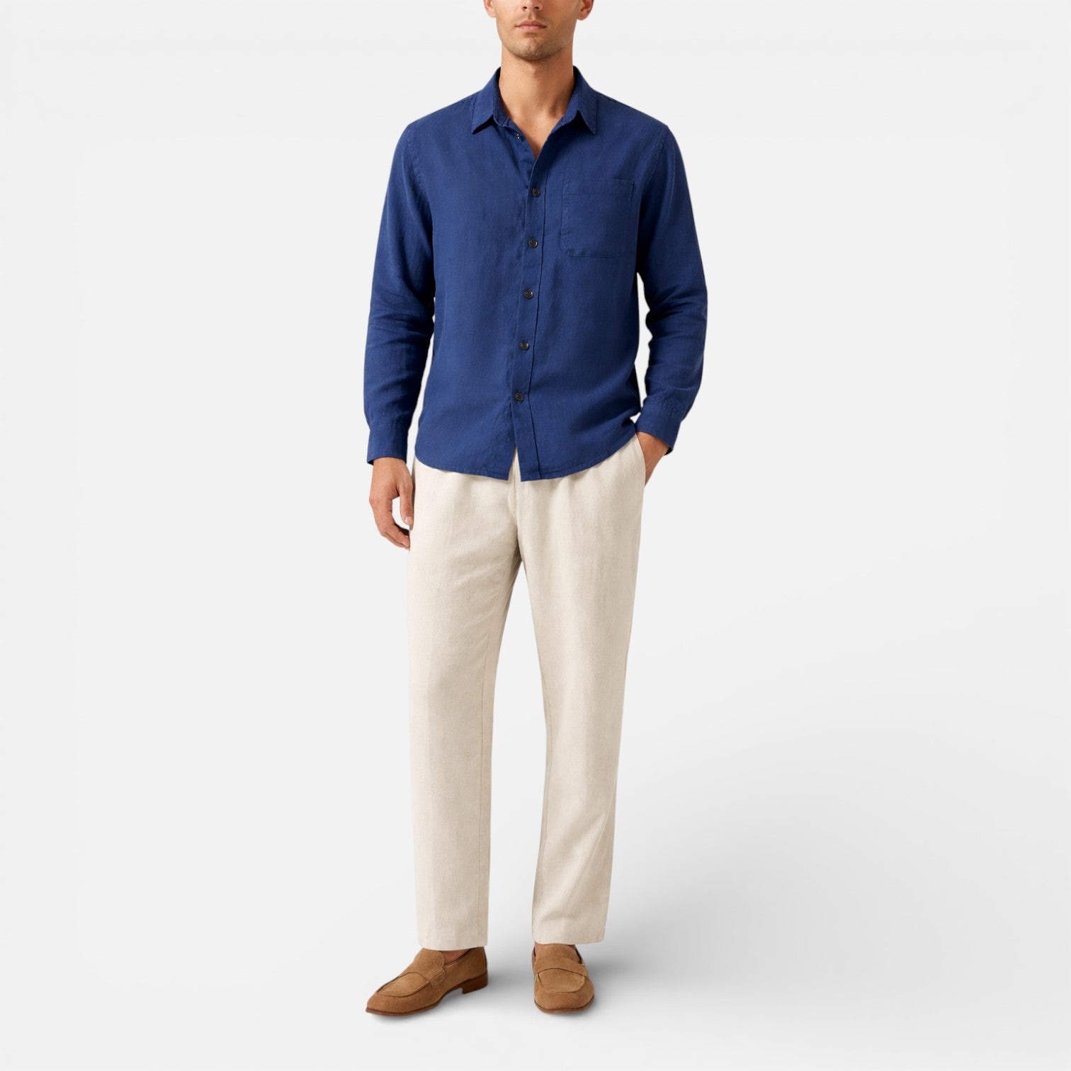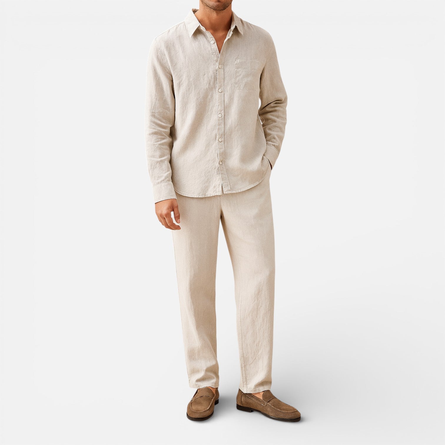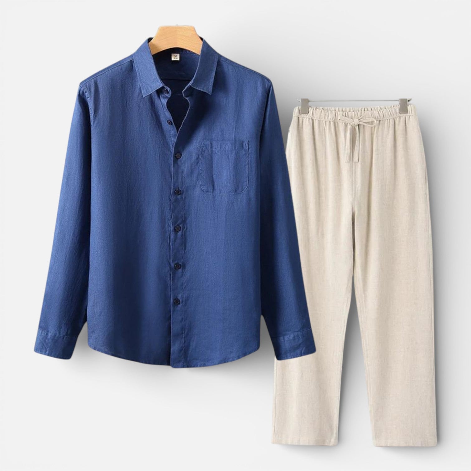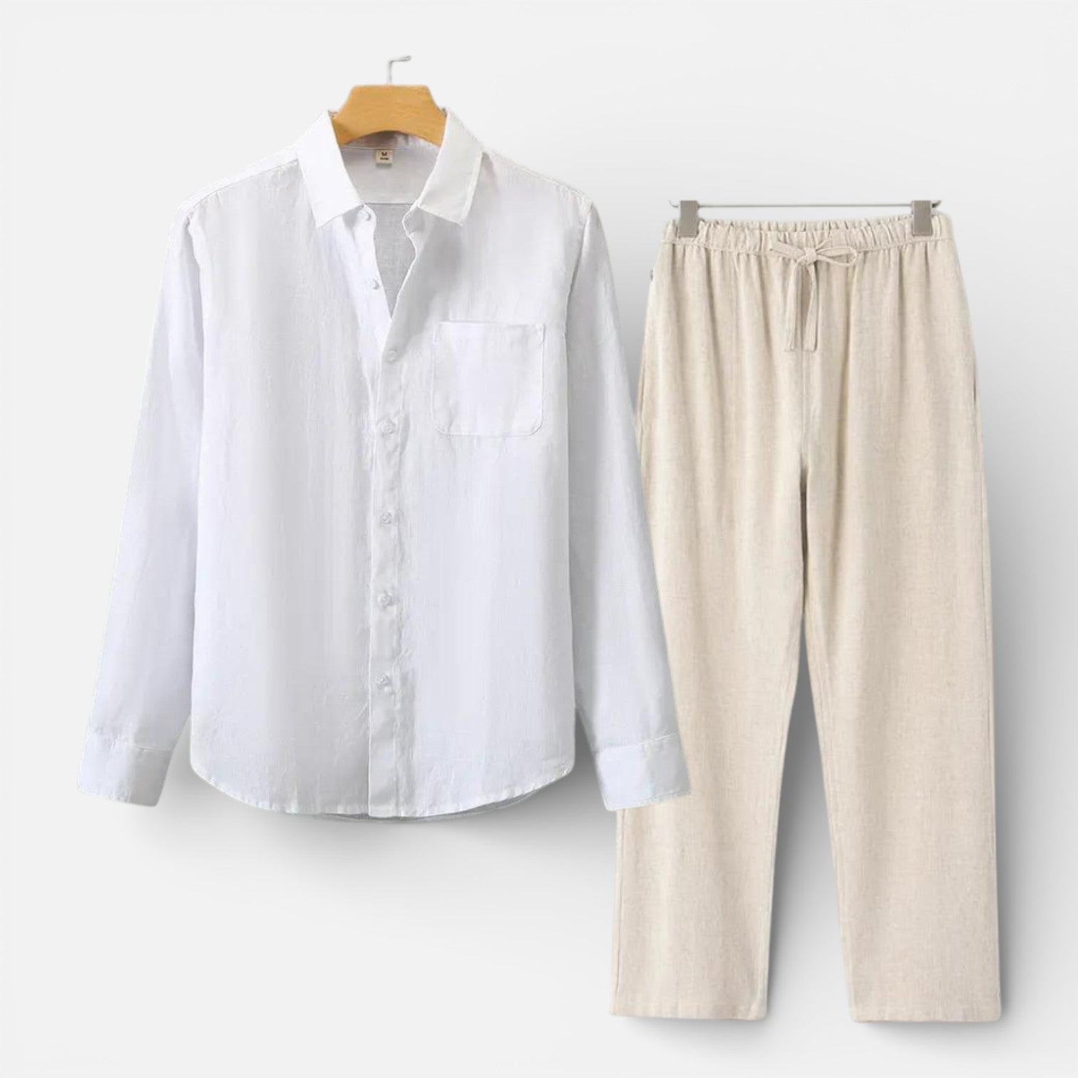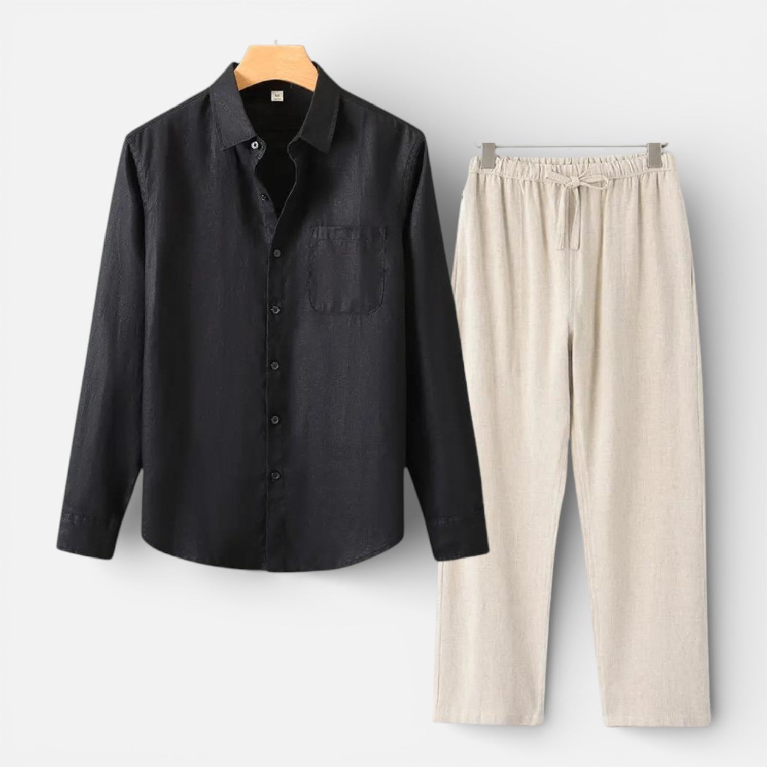 Men’s Linen Shirt and Pants Set Lightweight Casual Outfit