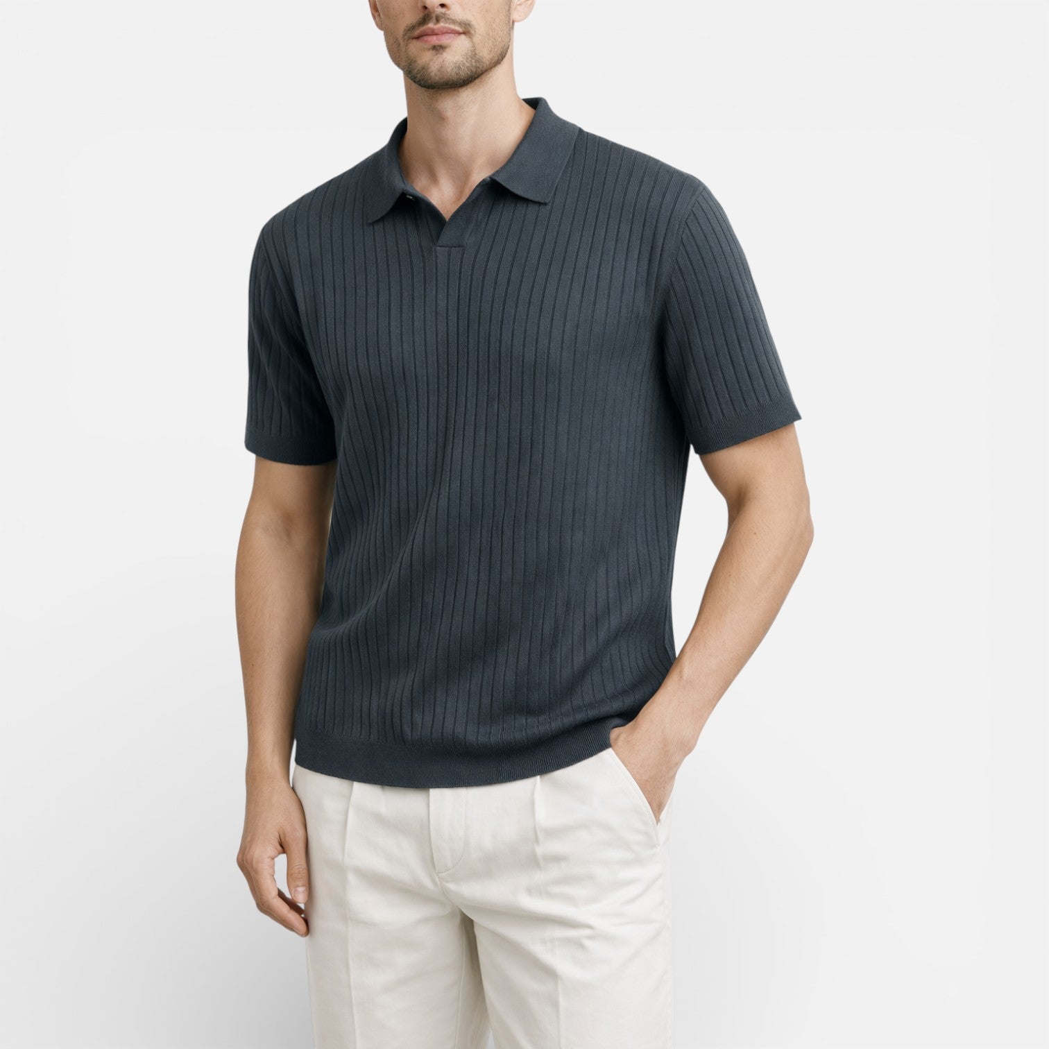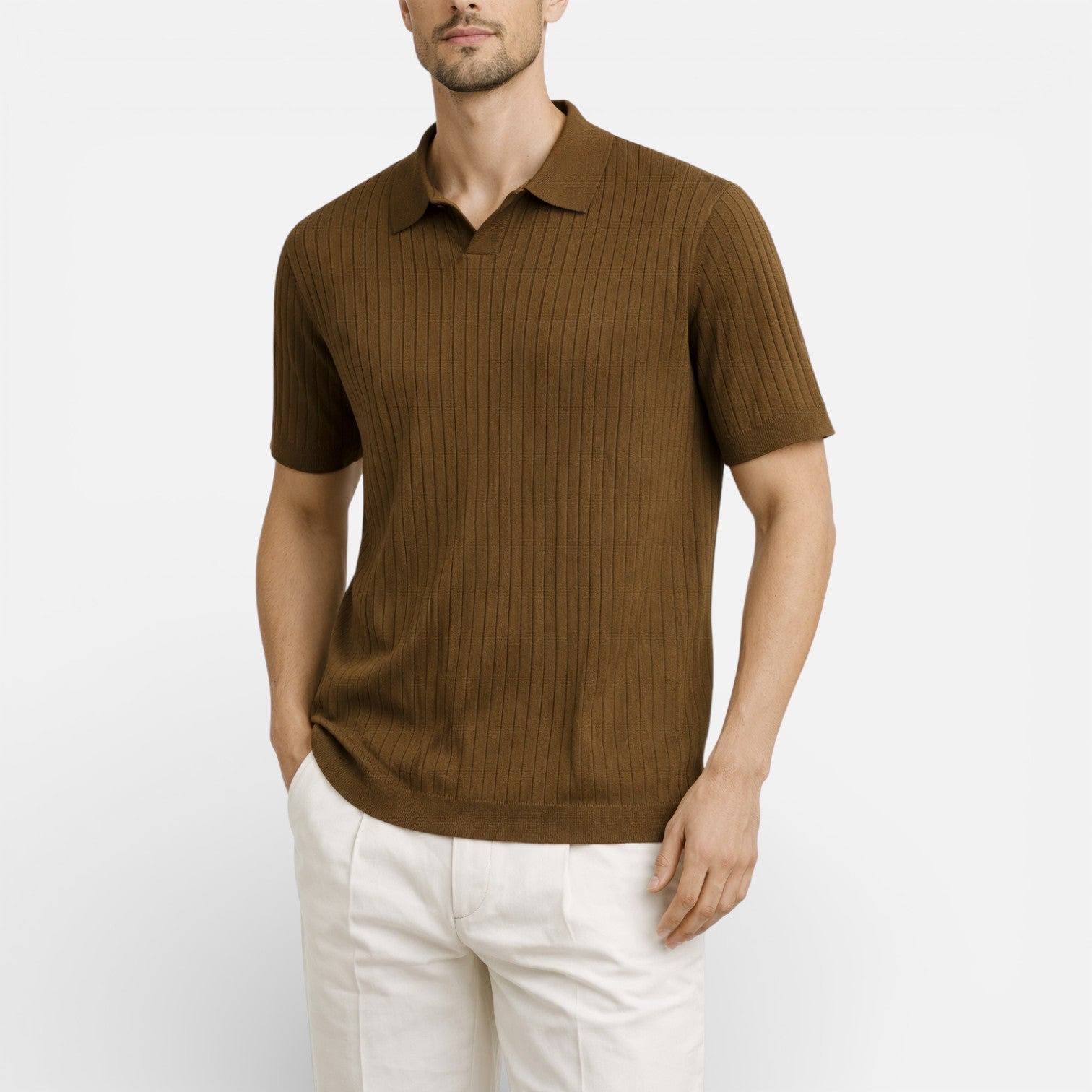 Men’s Ribbed Polo Shirt Premium Viscose Blend Slim Fit