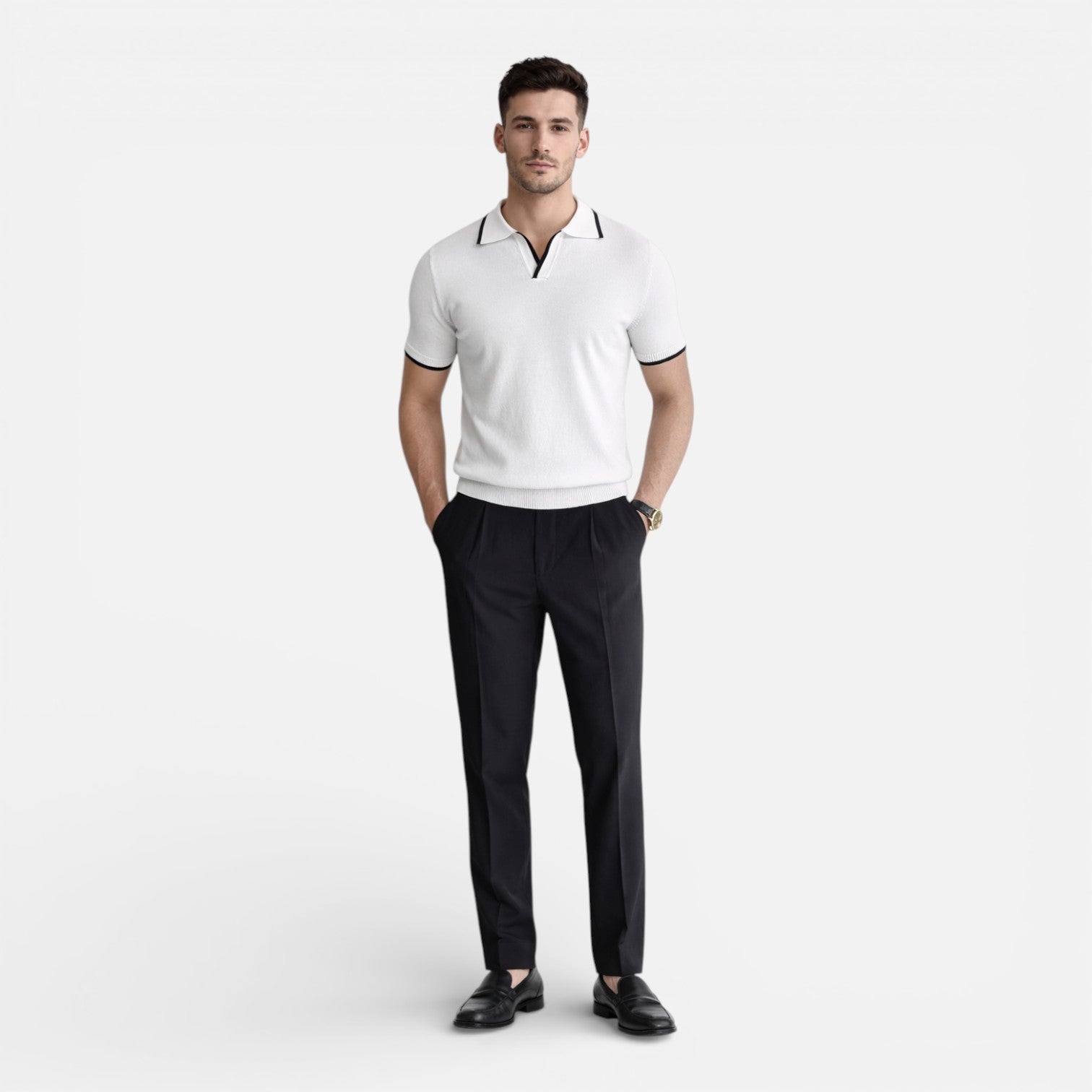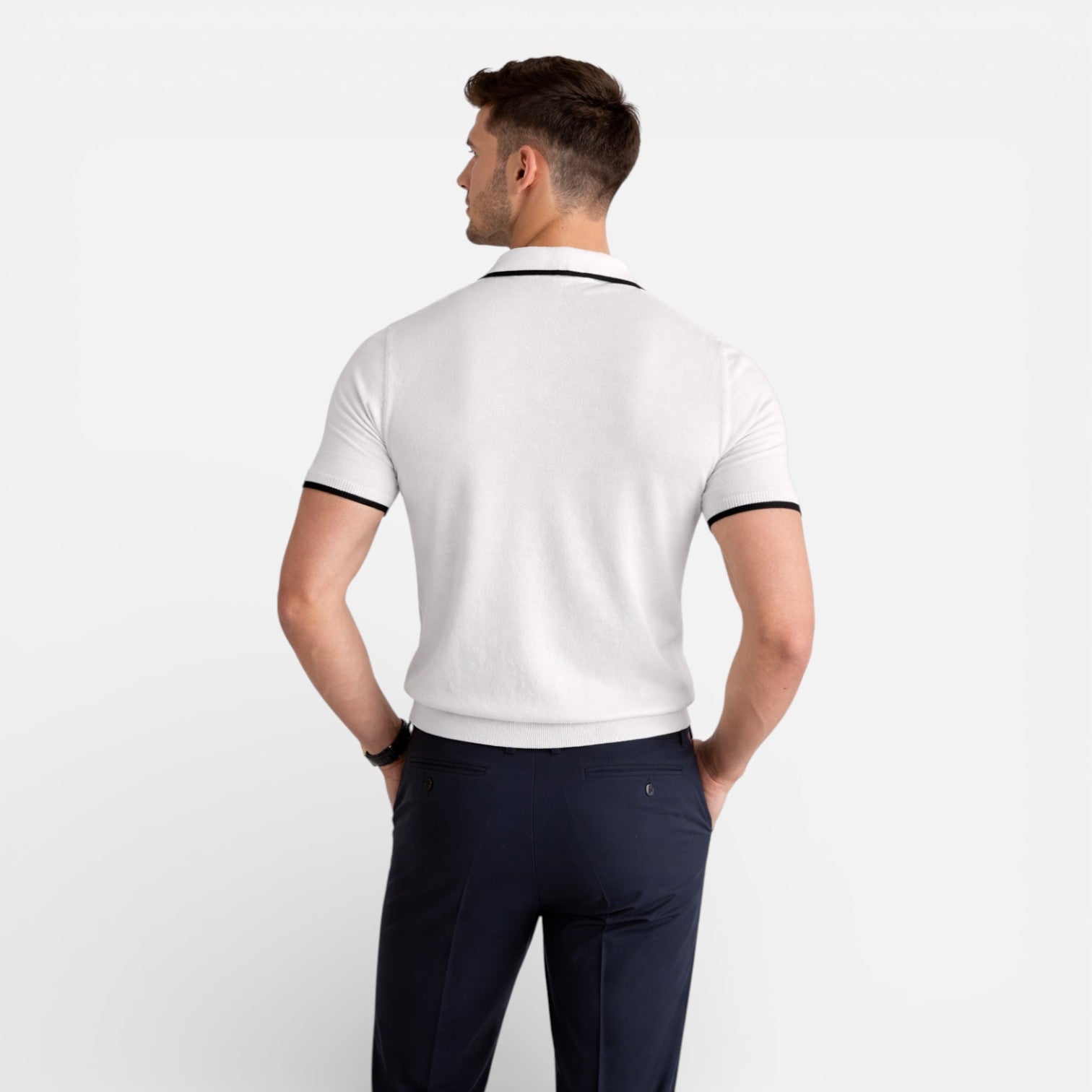 Men’s Slim Fit Polo Shirt Contrast Collar Lightweight Knit
