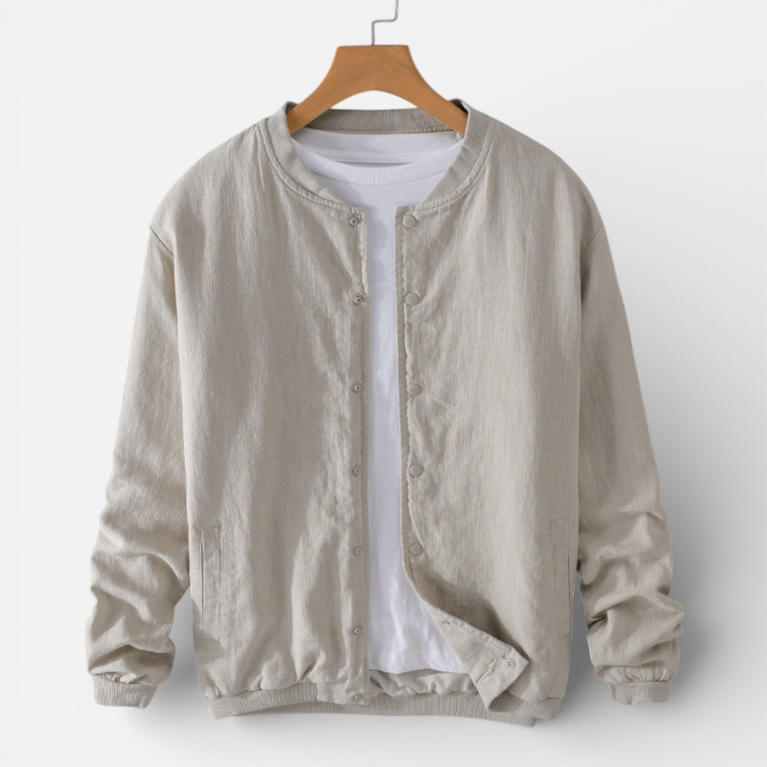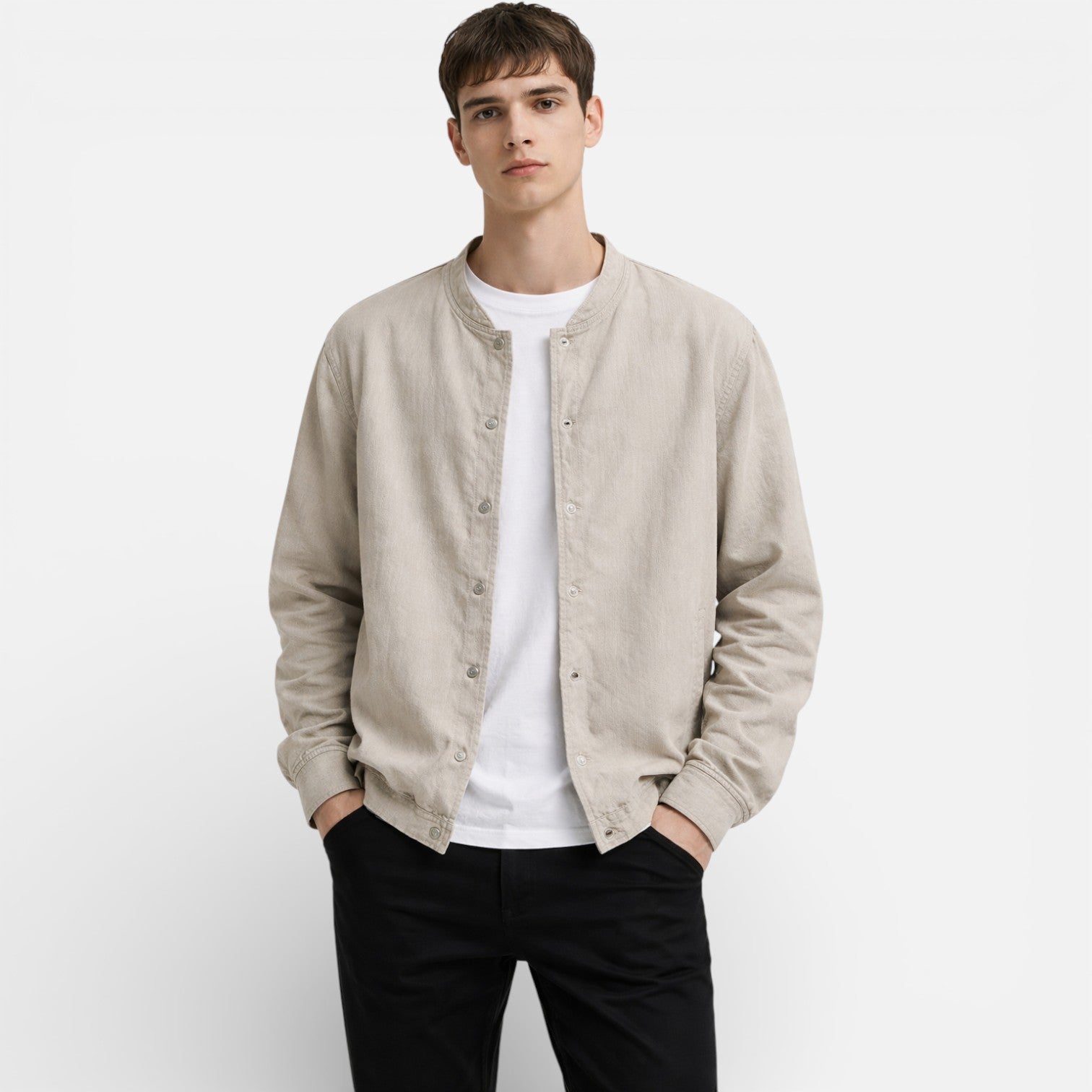 Picture yourself wearing it on a summer evening walk, hands in your pockets, moving through the day with calm assurance. This jacket isn’t about trends—it’s about feeling composed, comfortable, and quietly refined, wherever the season takes you.