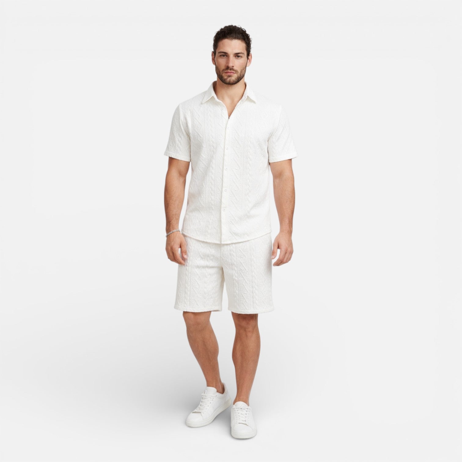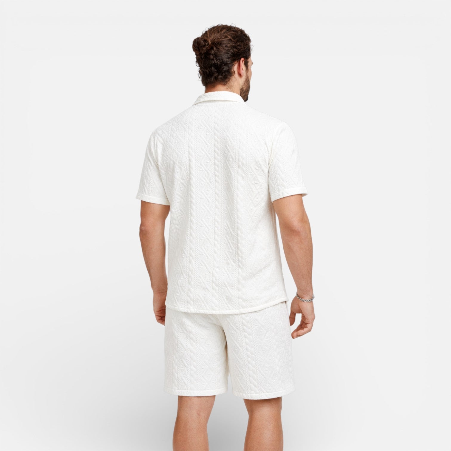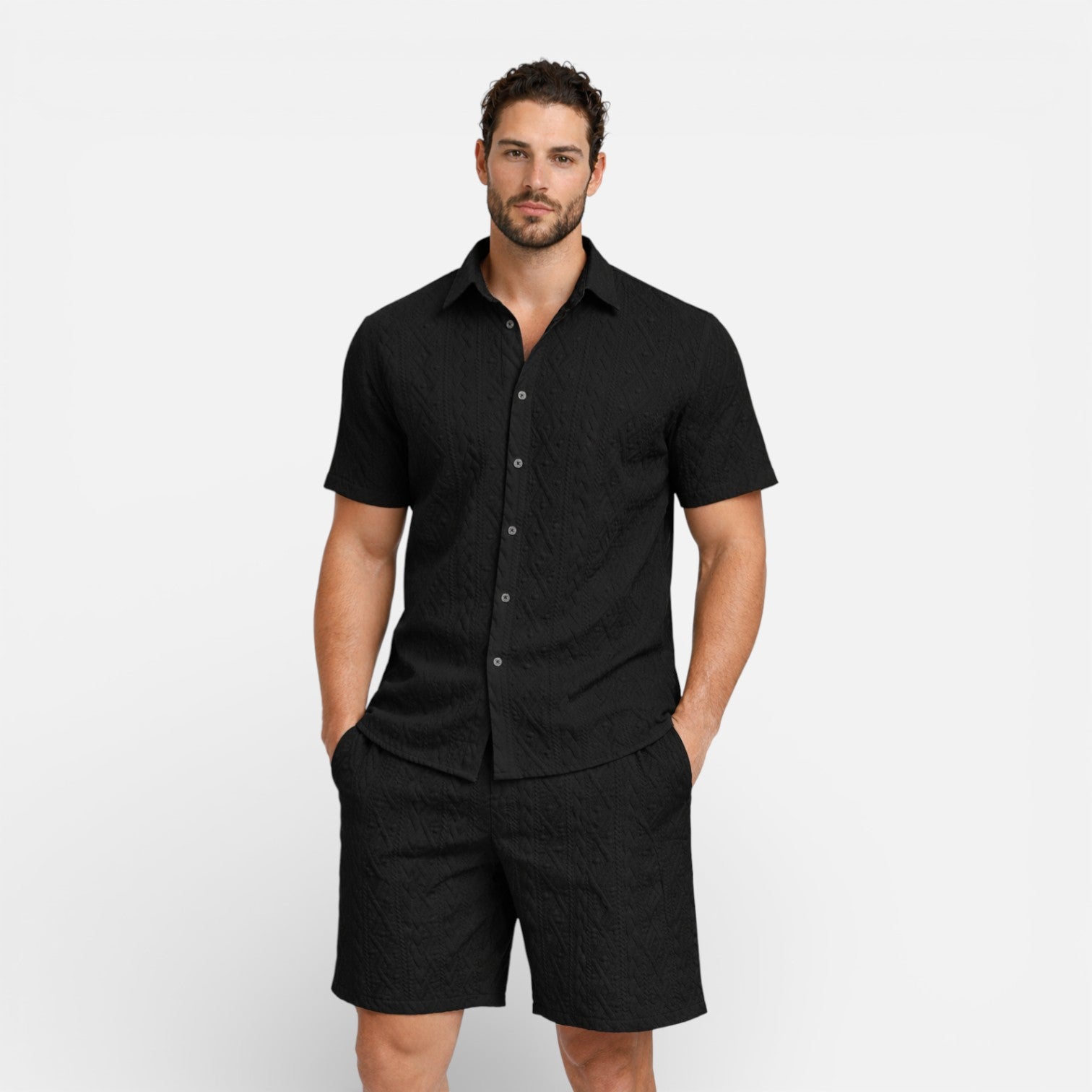 Men’s Summer Outfit Shirt and Shorts Set Lightweight Textured