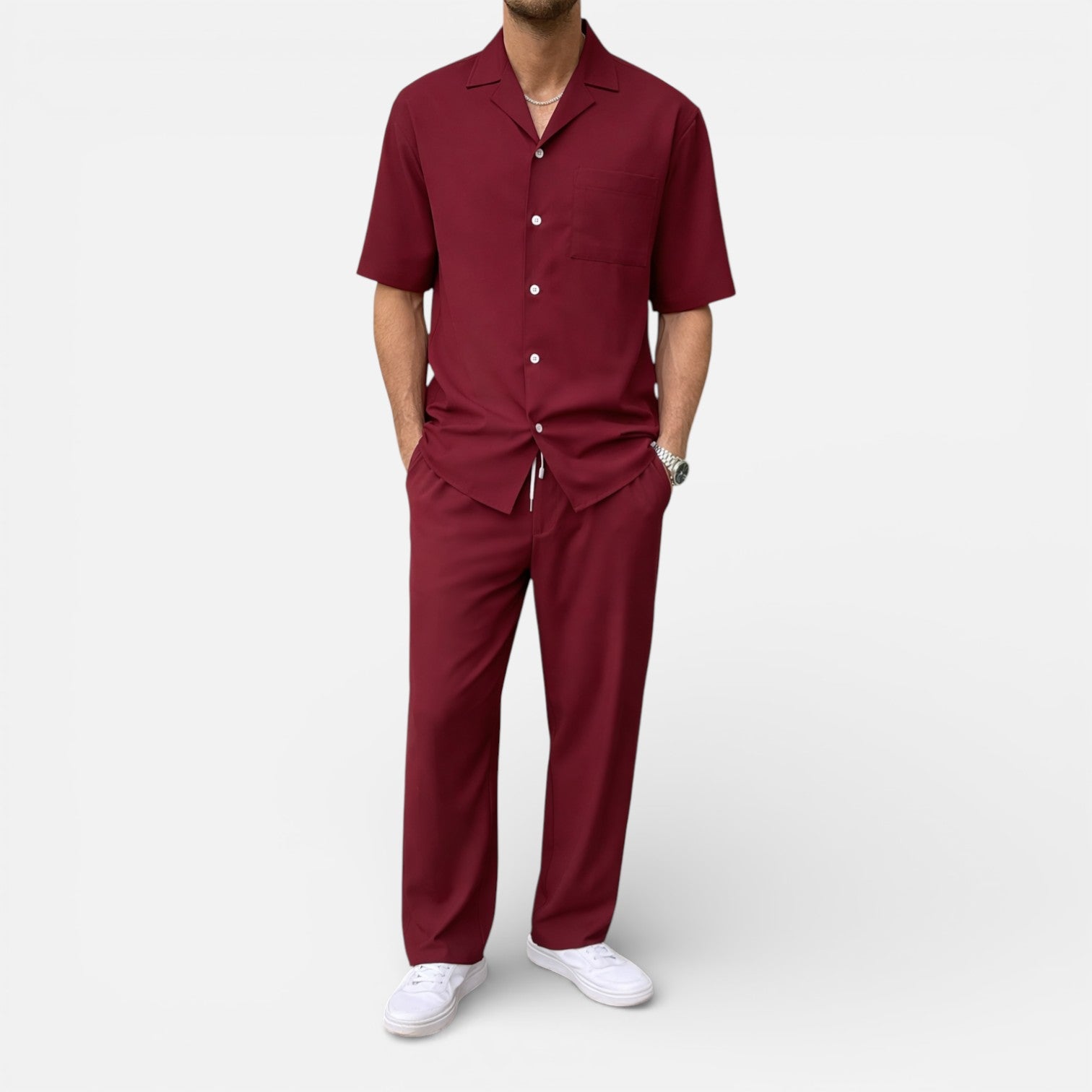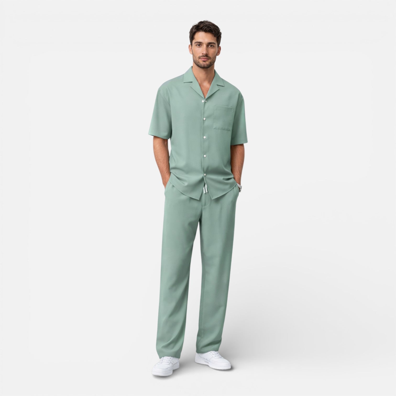 Men’s Summer Two Piece Outfit Short Sleeve Shirt and Pants