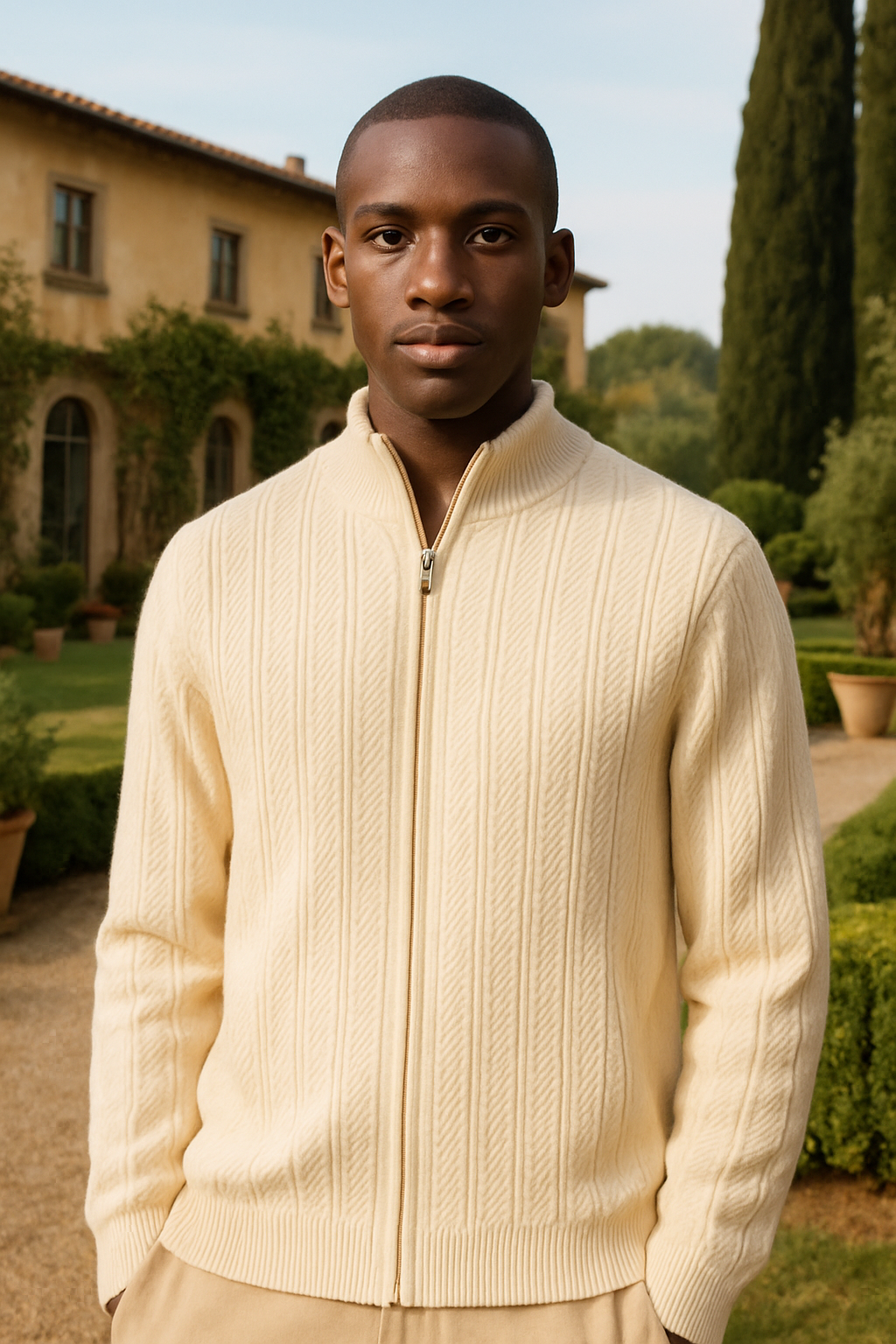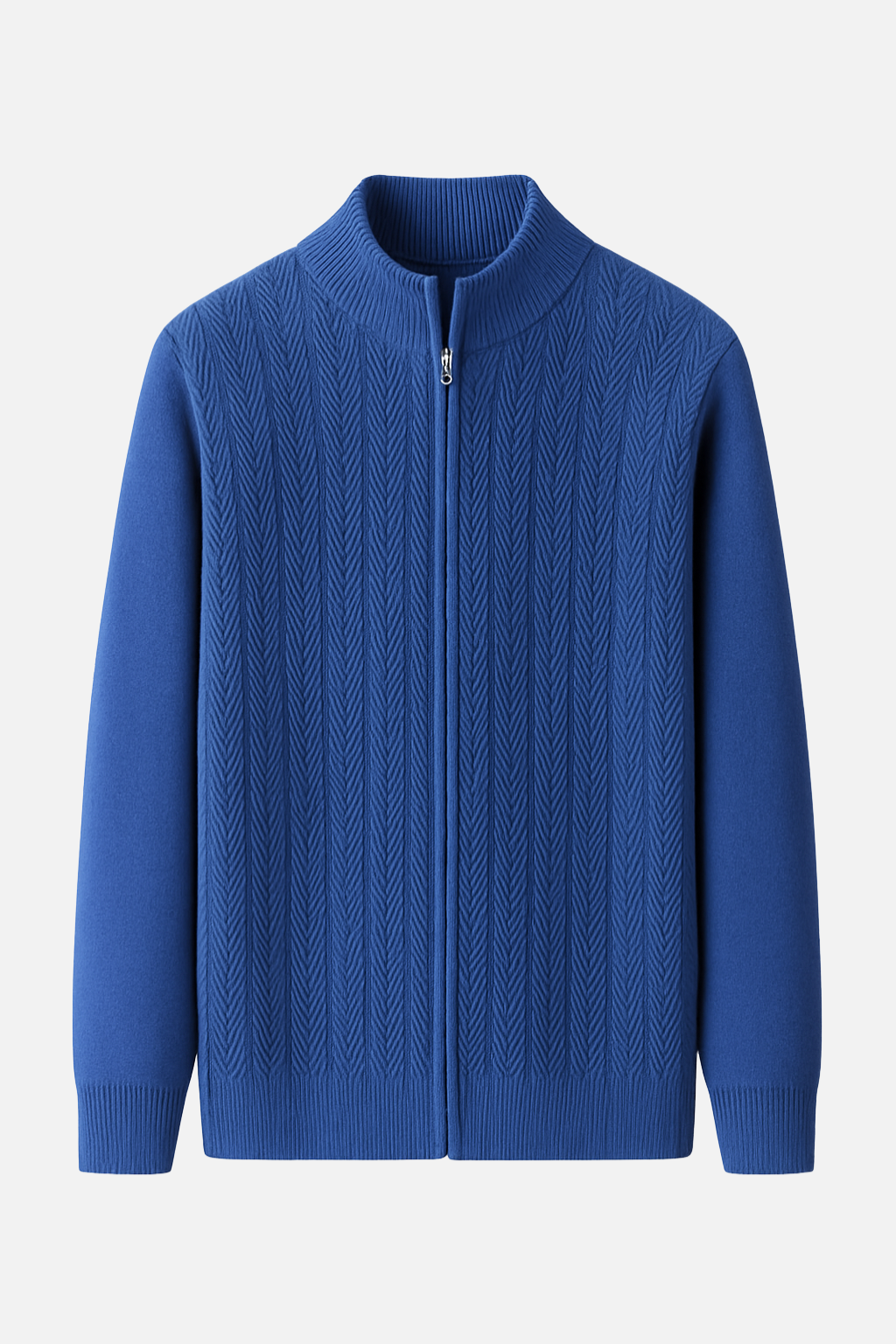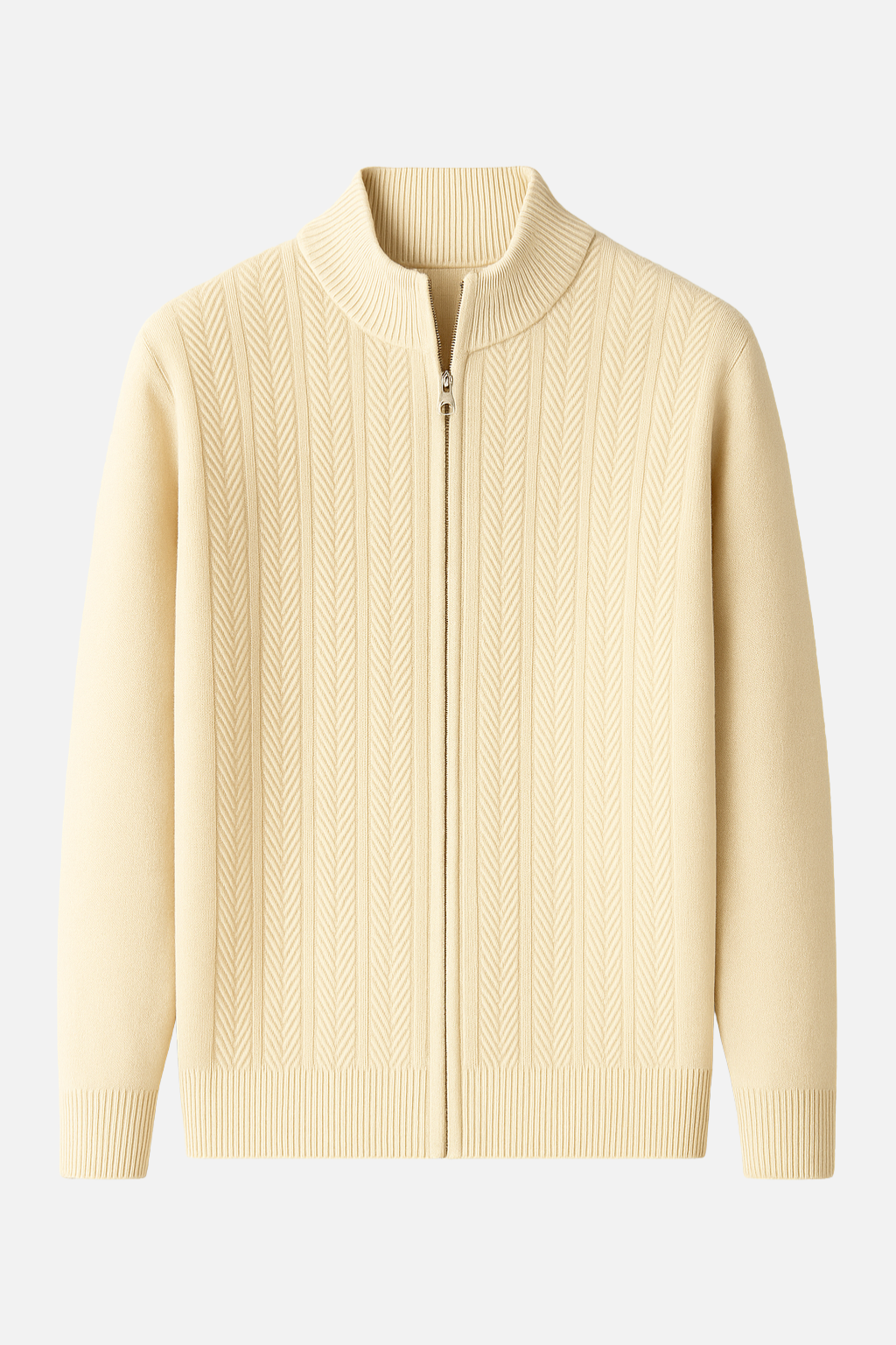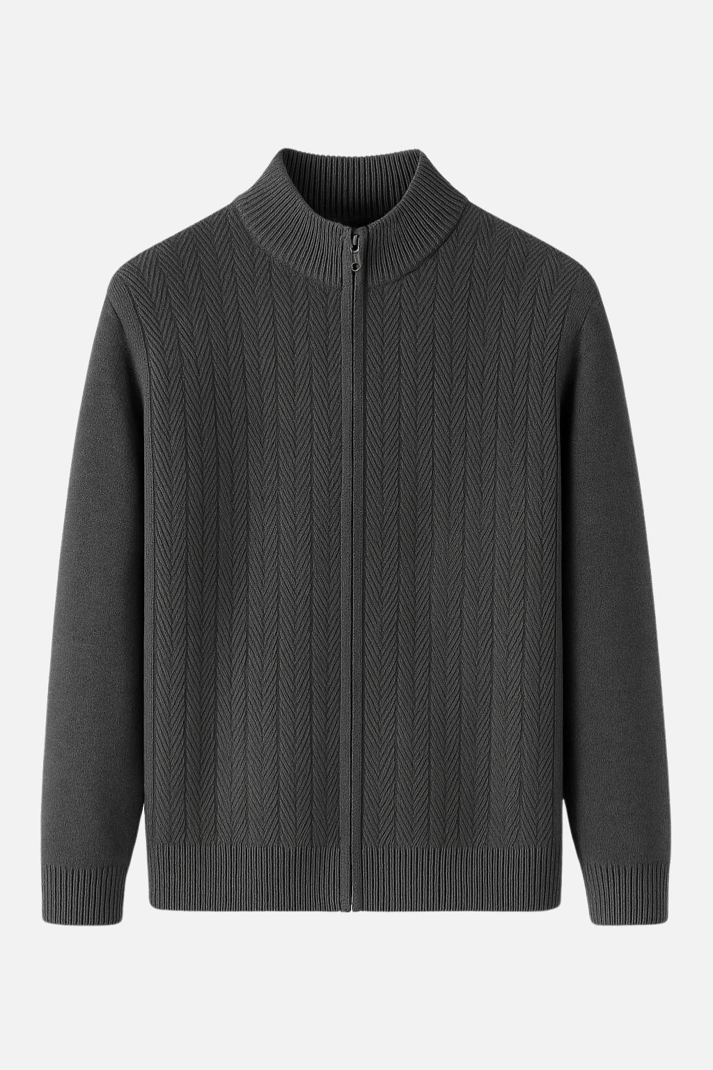 Miles Men’s Wool Zip Cardigan – Full Zip Knit Sweater with High Collar