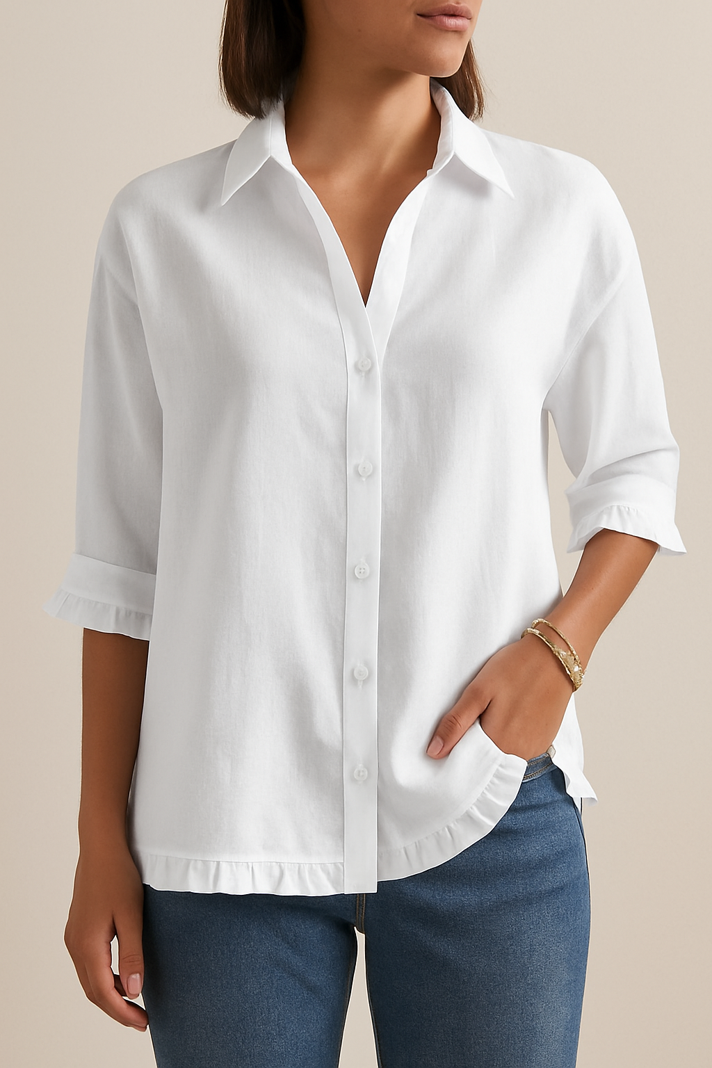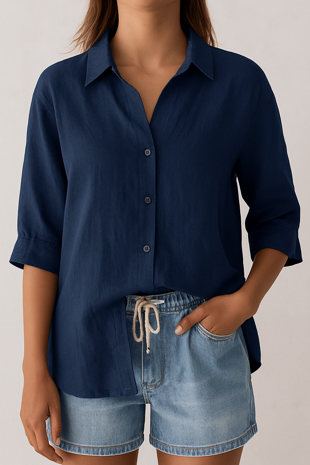 The Mira Linen Short Sleeve Blouse is crafted from breathable linen fabric, designed to keep you cool and comfortable in warmer weather. Featuring a relaxed fit and classic collar, this blouse offers effortless style for casual and smart-casual occasions.