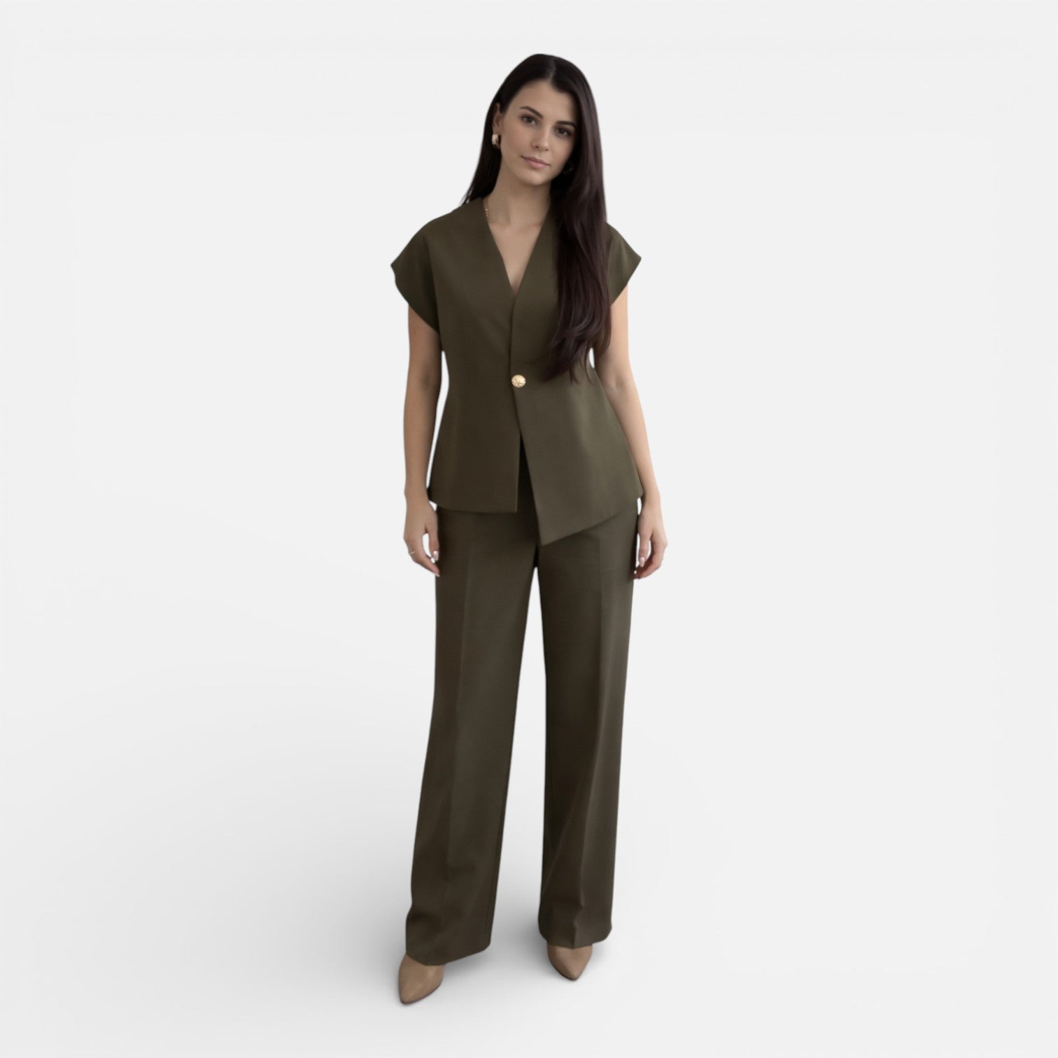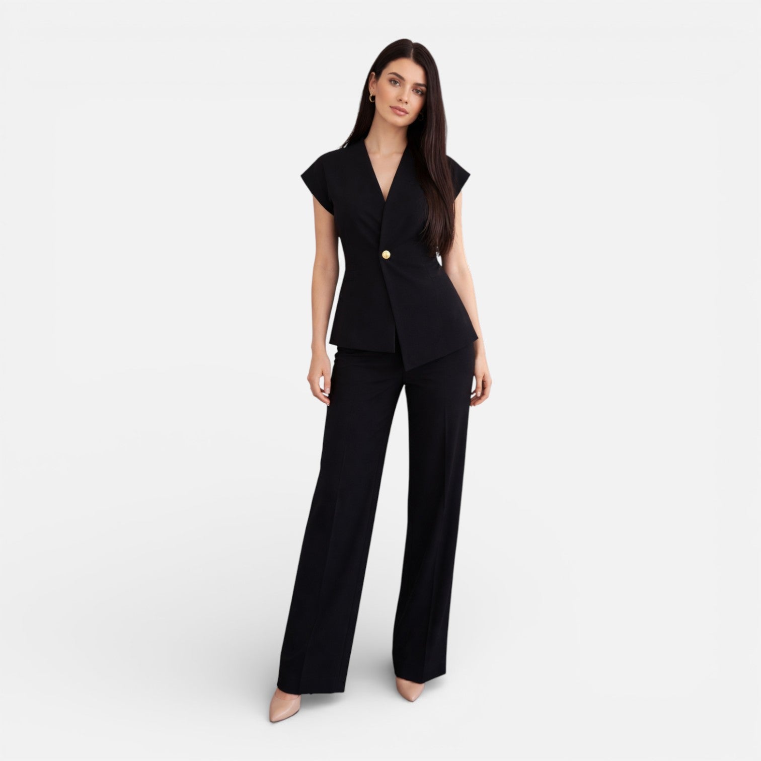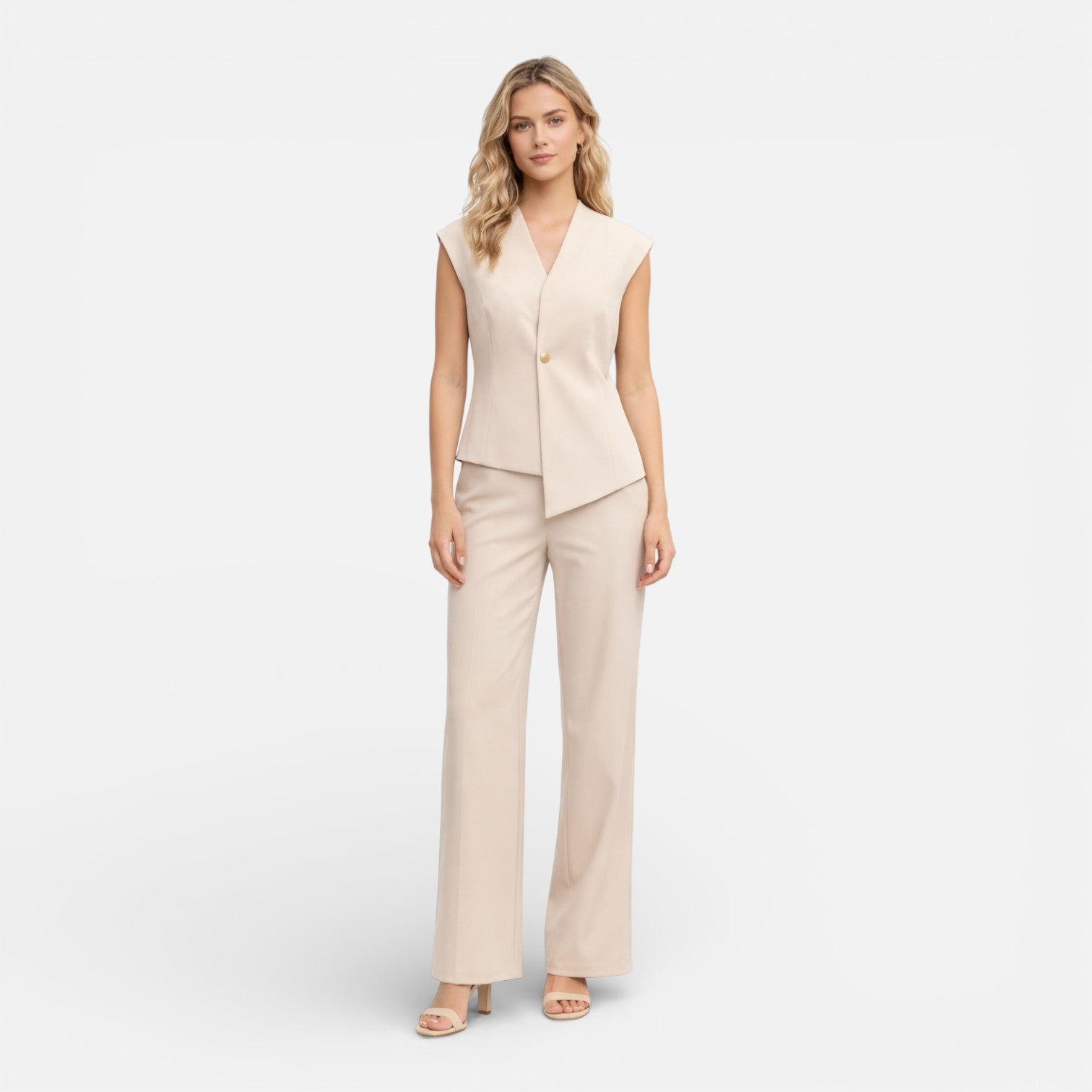 Women’s 2 Piece Pants Suit Sleeveless Top Smart Casual Tailored