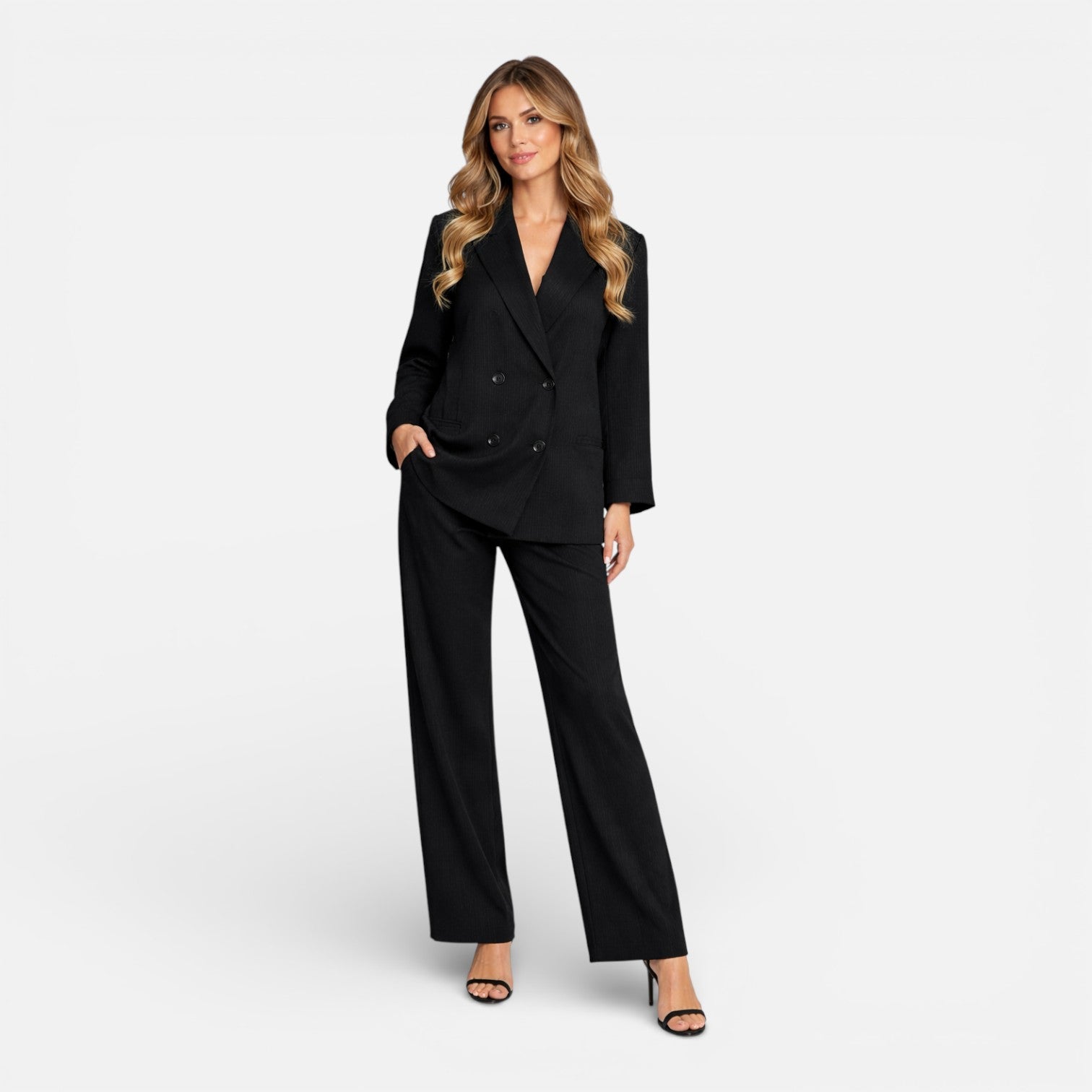 Women’s Blazer and Trousers Set Wrinkle Texture Lightweight Suit