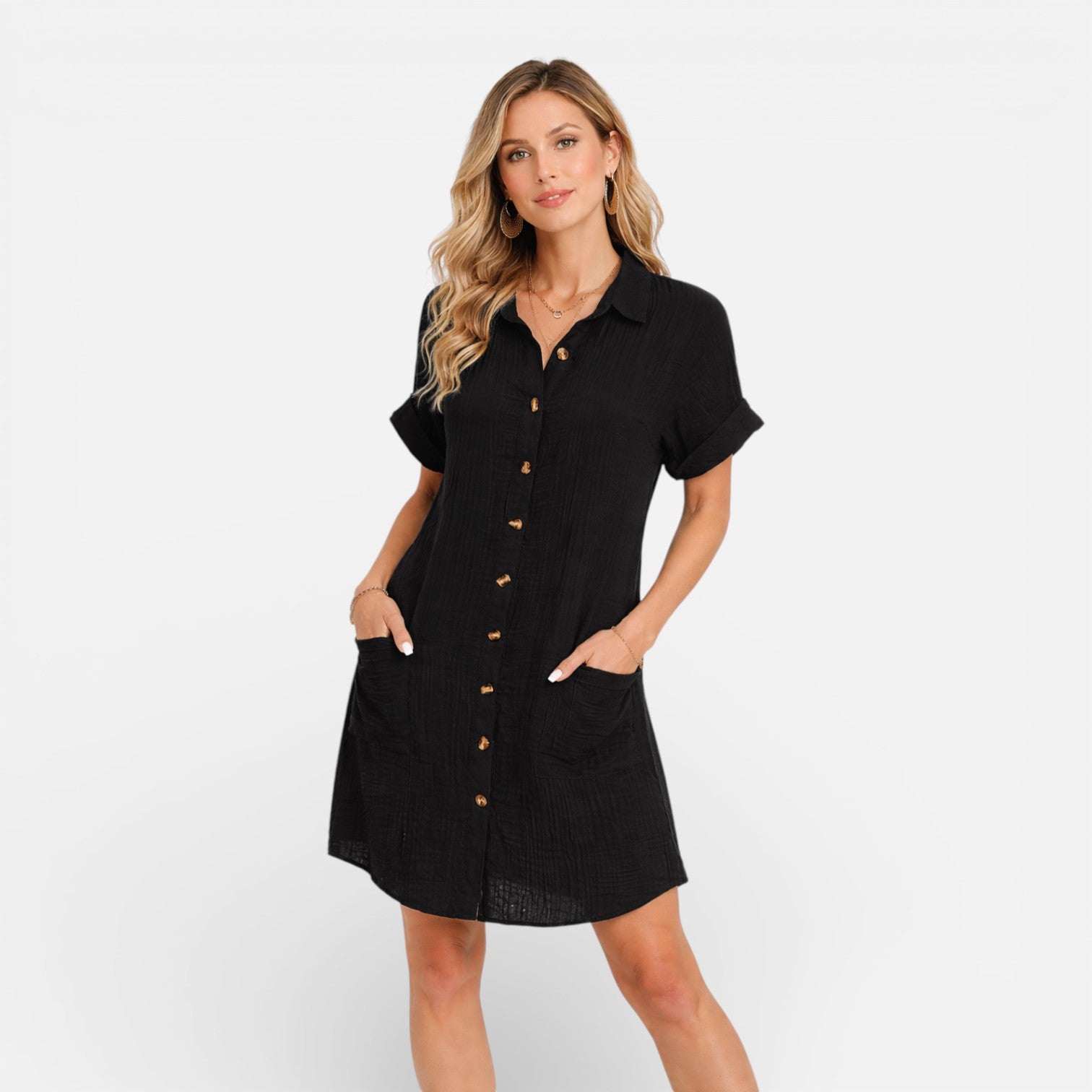 Women’s Linen Cotton Blend Shirt Dress Button Front Casual Summer Dress
