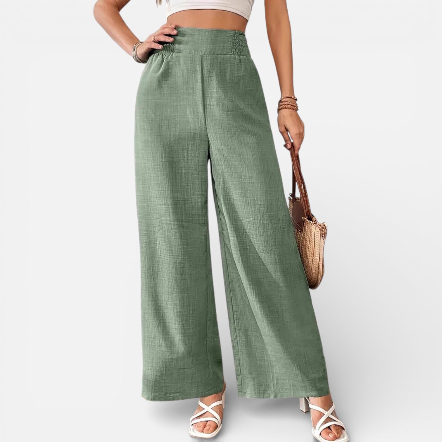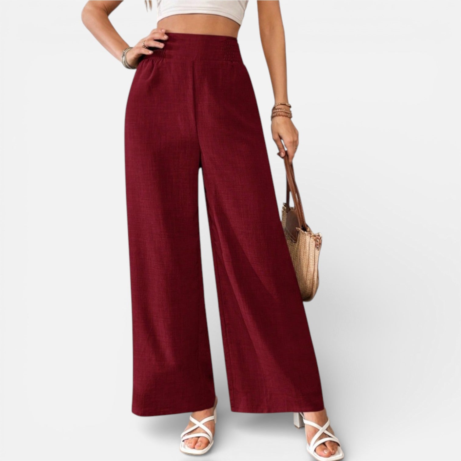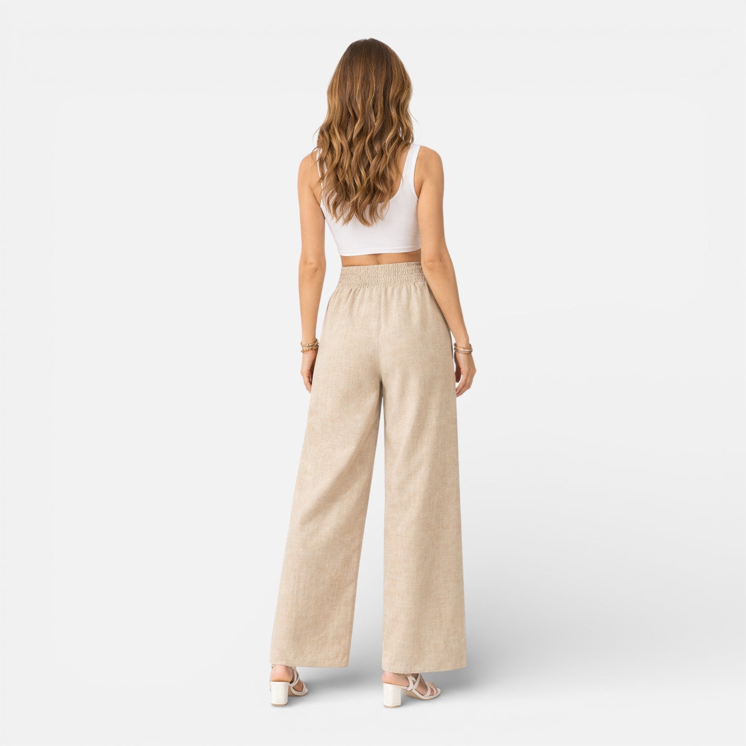 Women’s Linen High Waist Wide Leg Trousers Lightweight