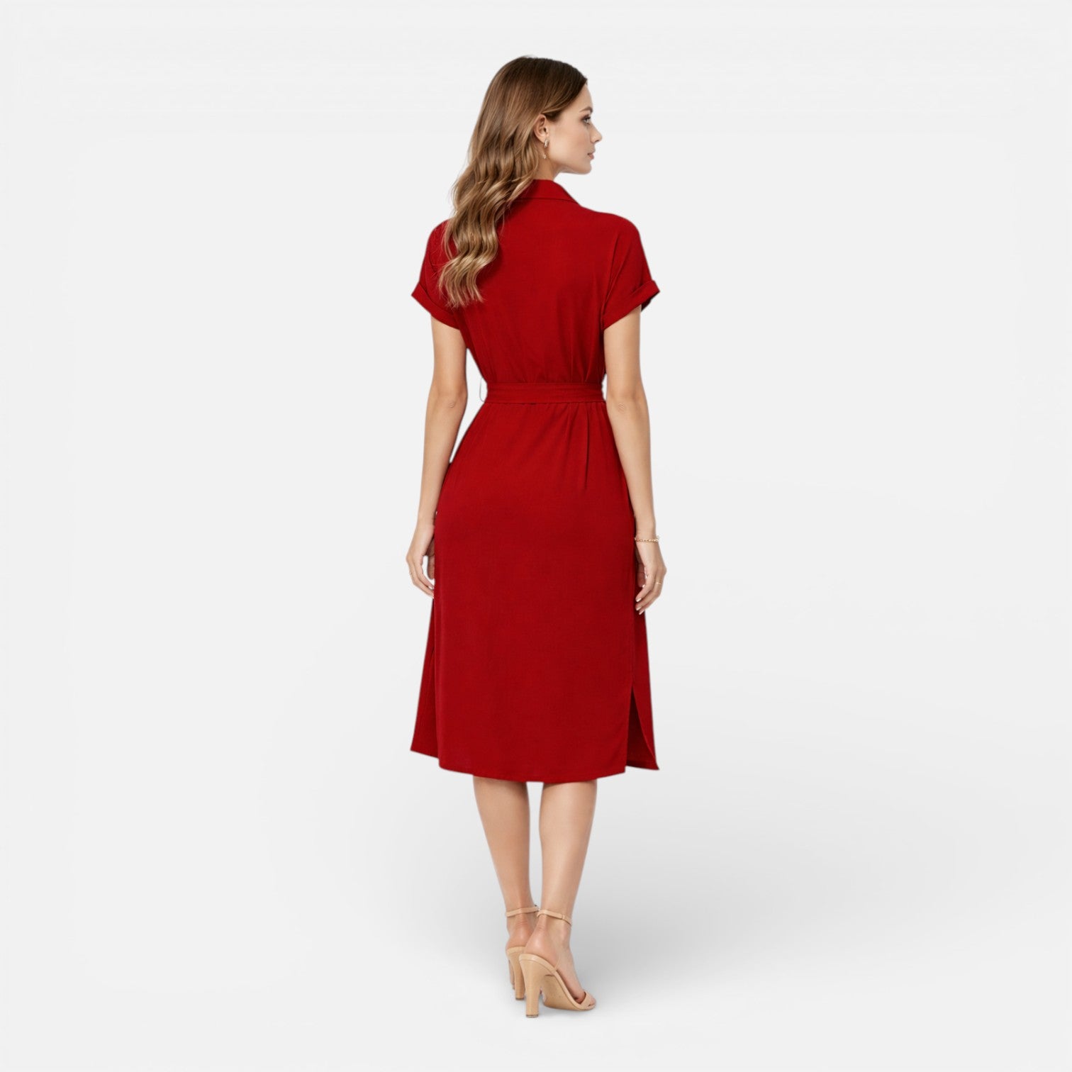 Women’s Midi Shirt Dress Lightweight Breathable Tie Waist