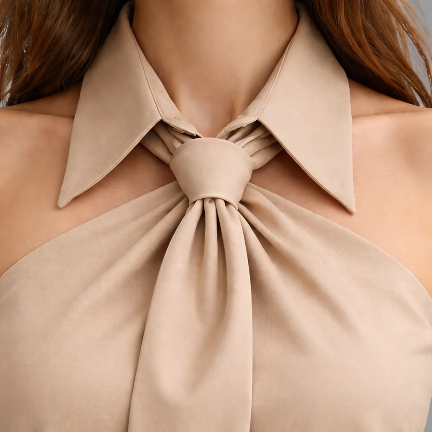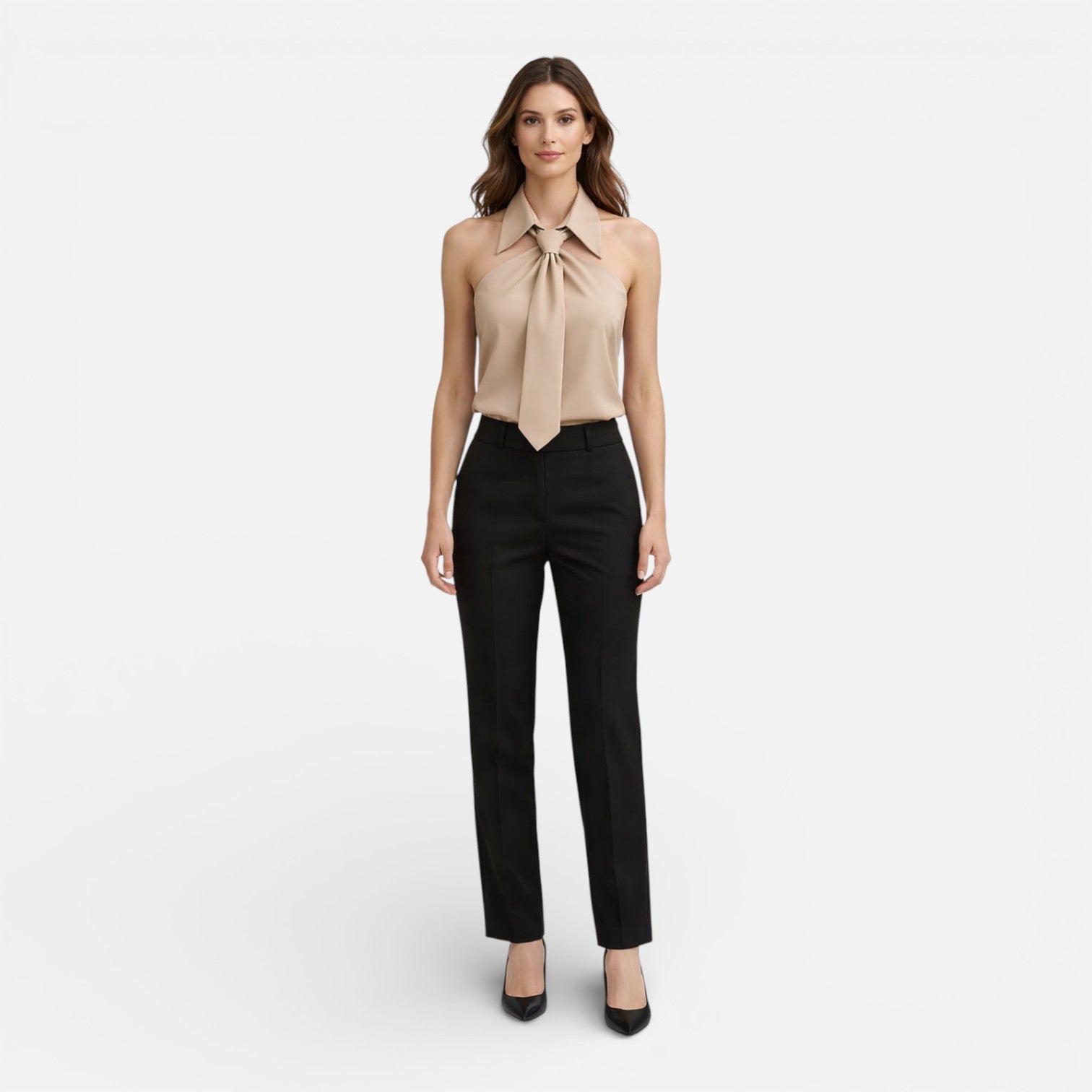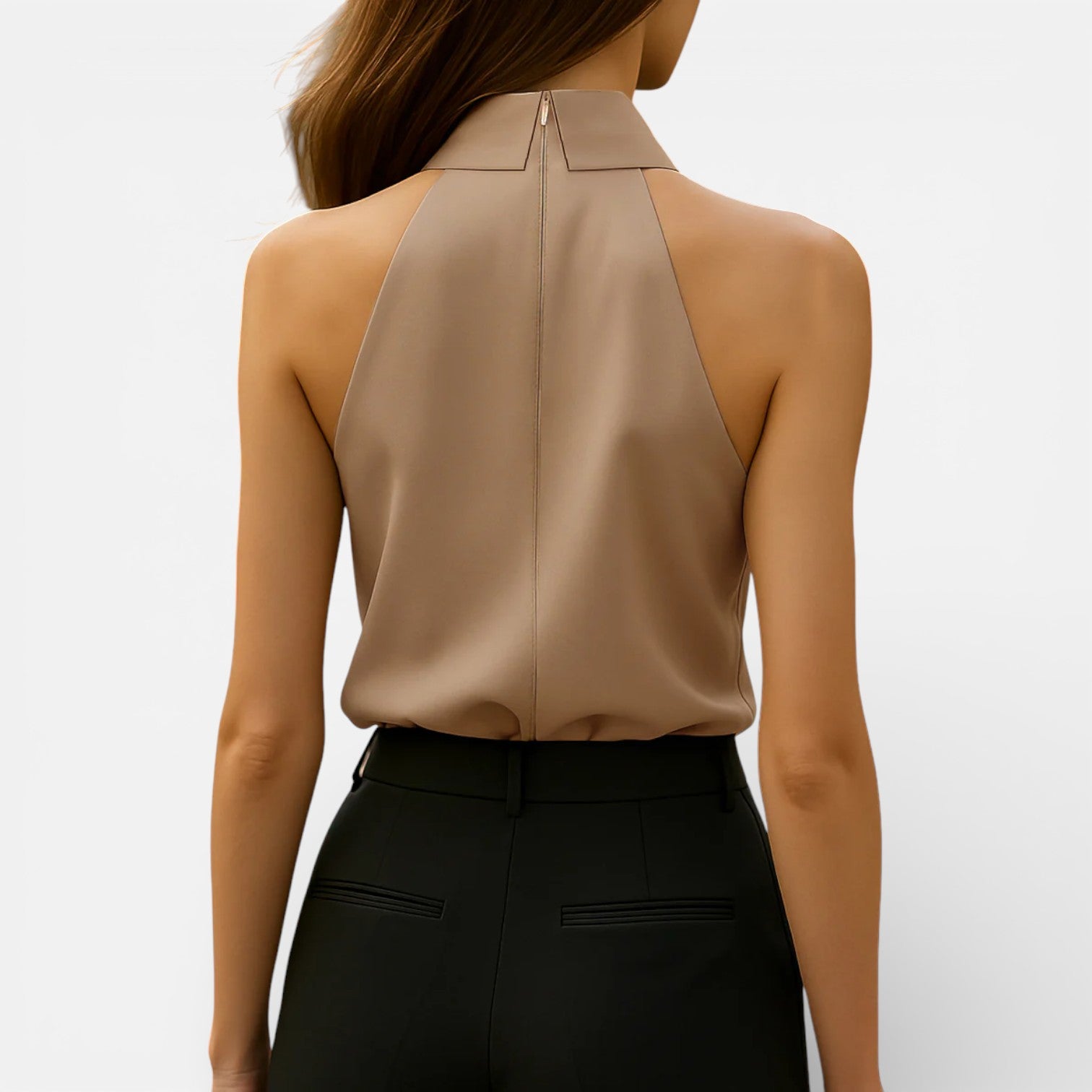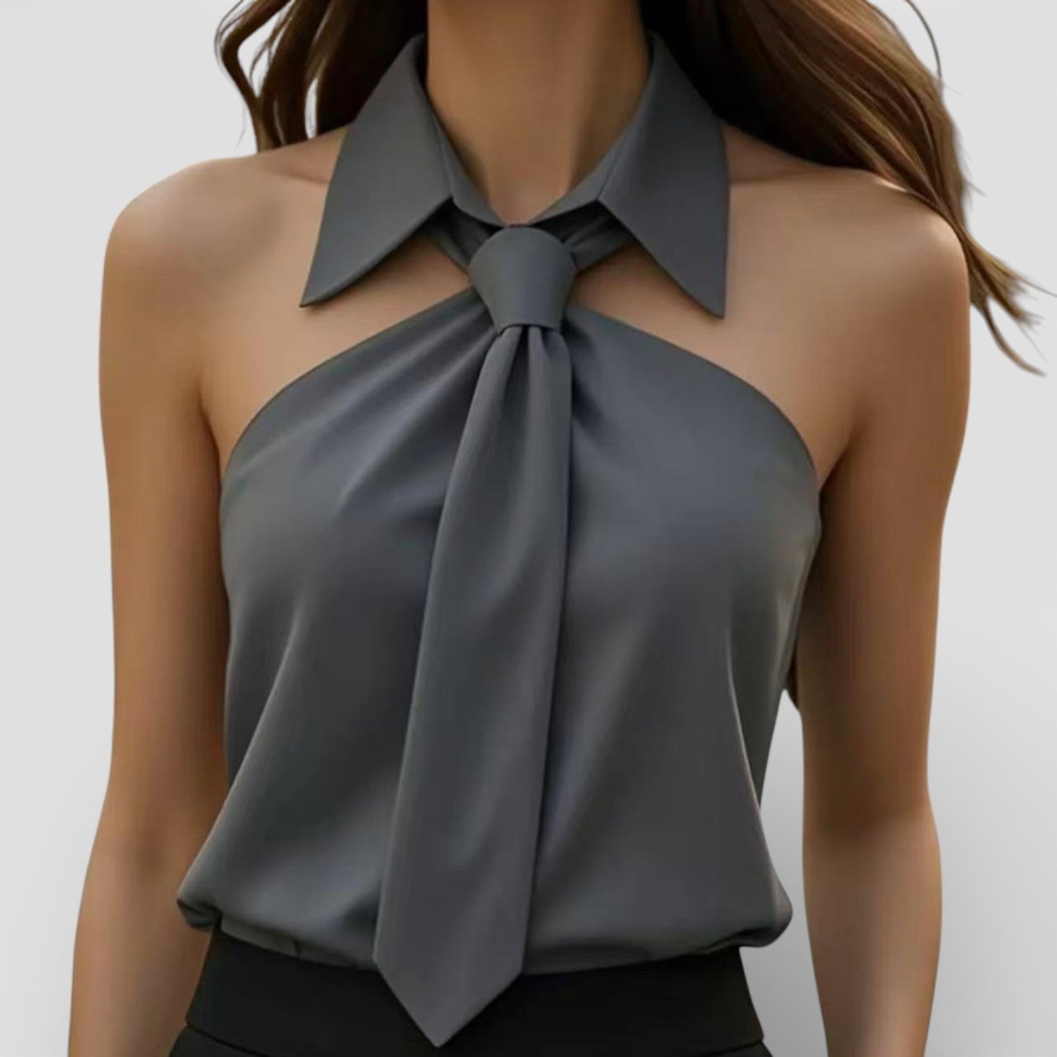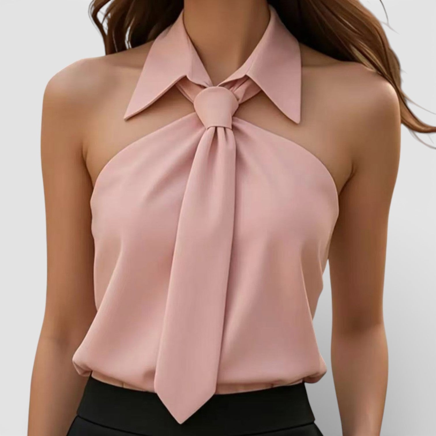 Women’s Sleeveless Halter Blouse Satin Neck Tie Elegant Fit