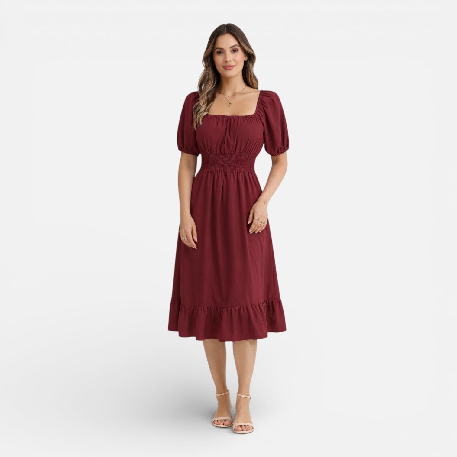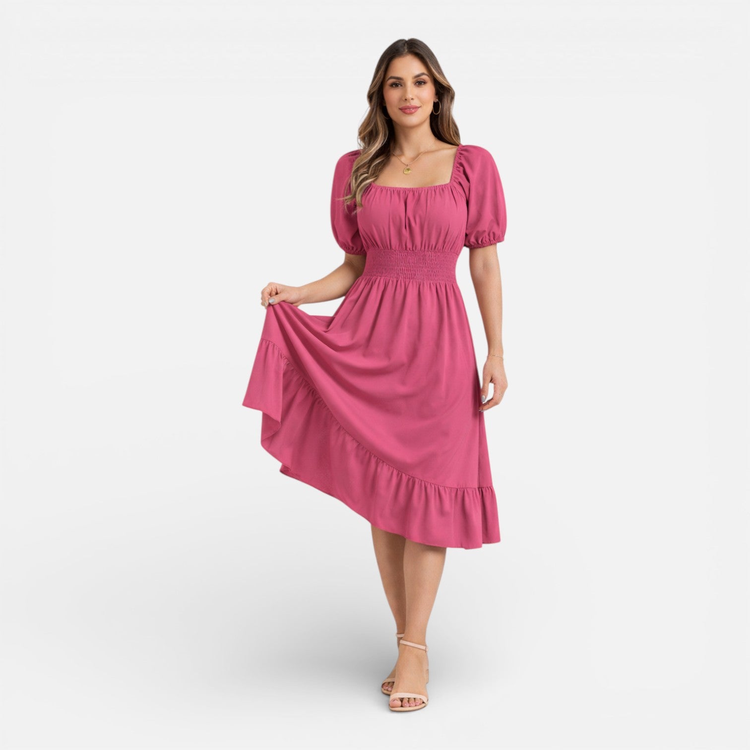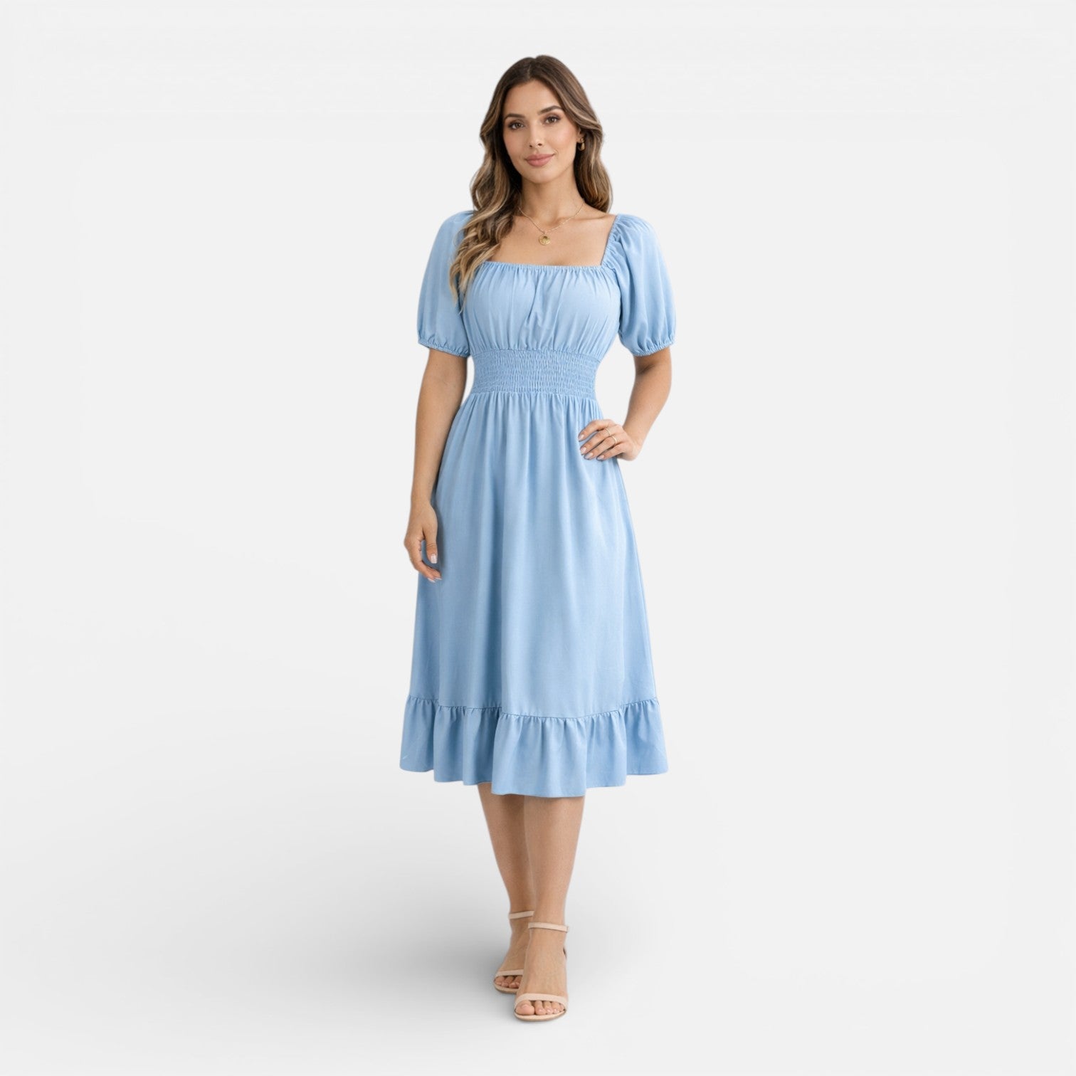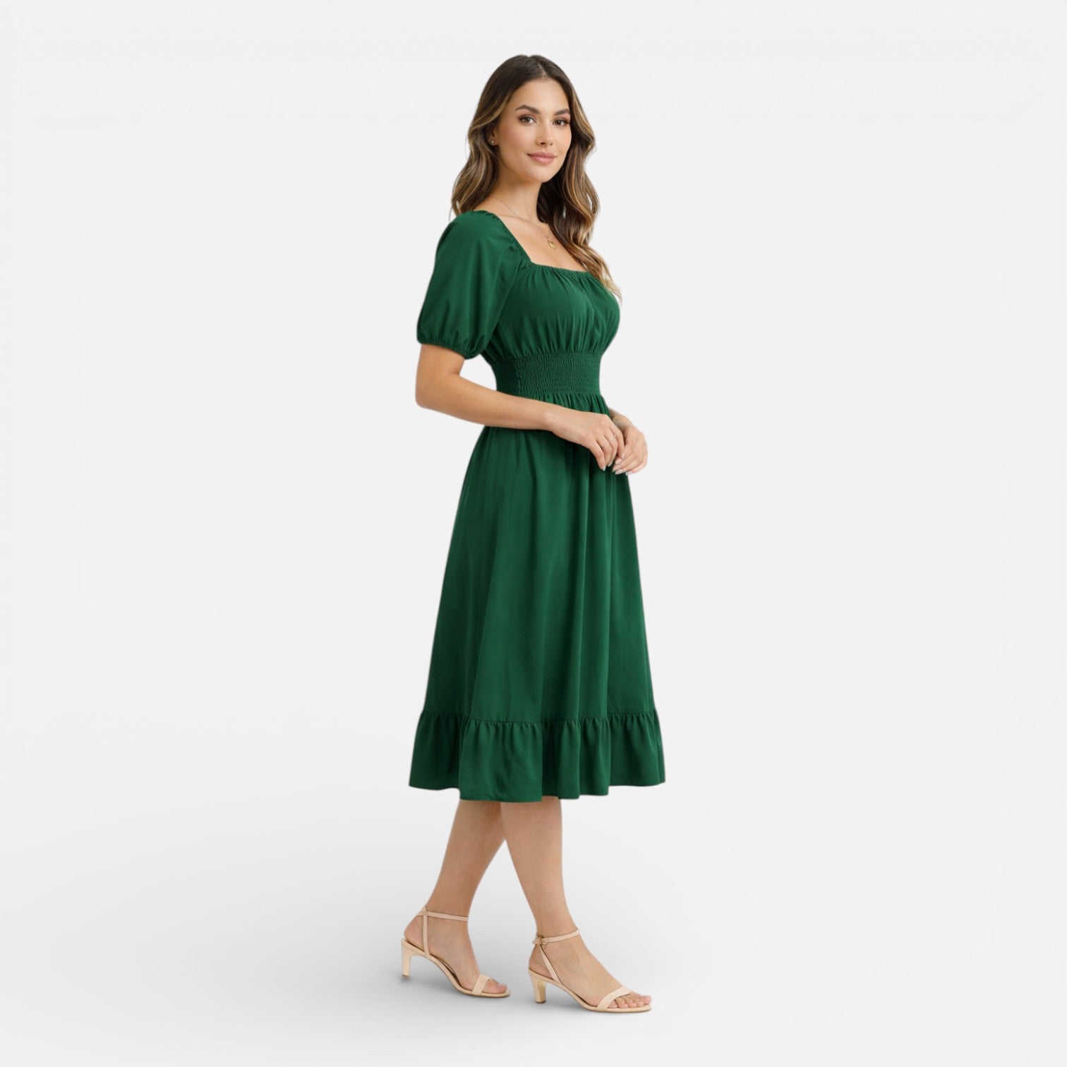 Women’s Square Neck Midi Dress Smocked Waist A-Line Summer