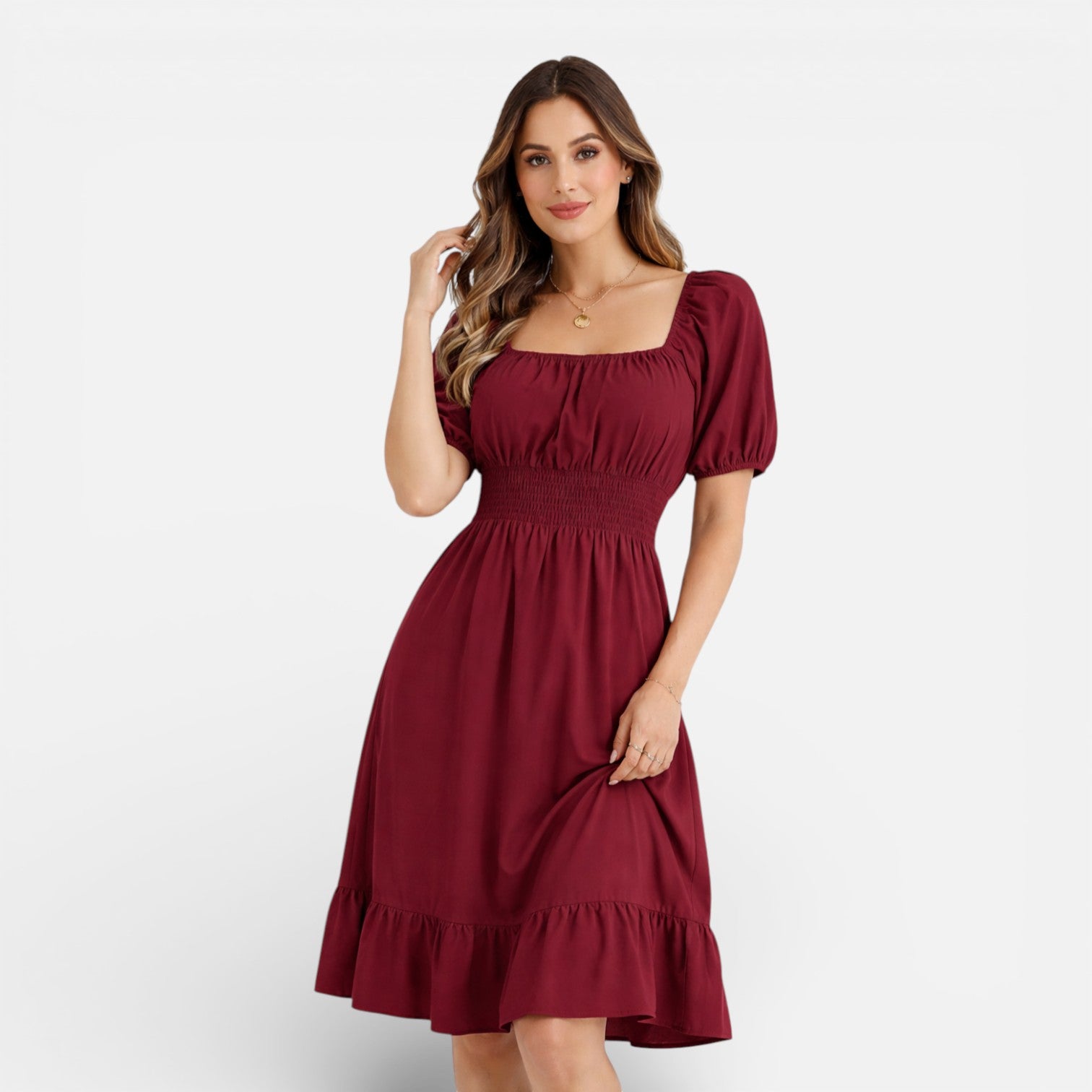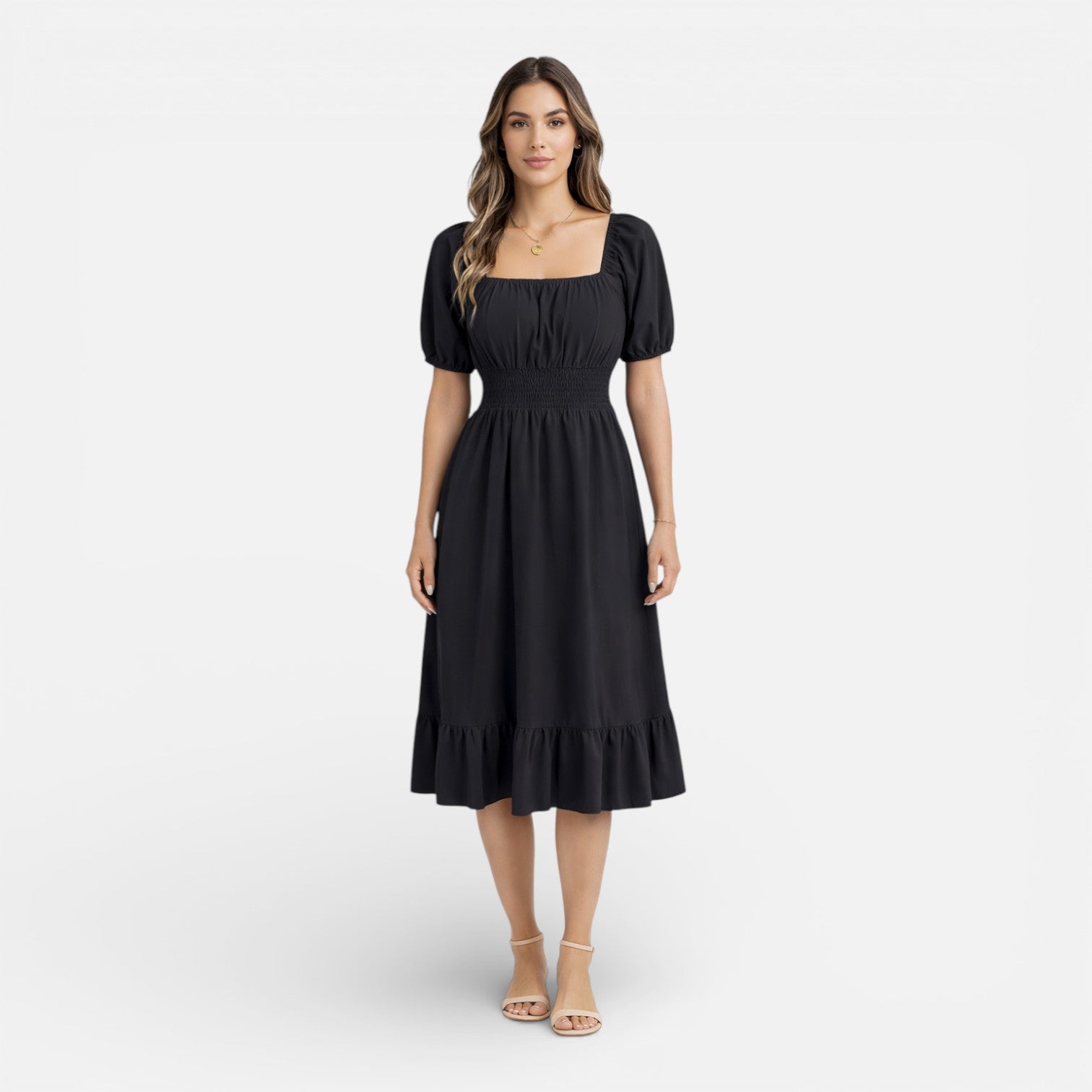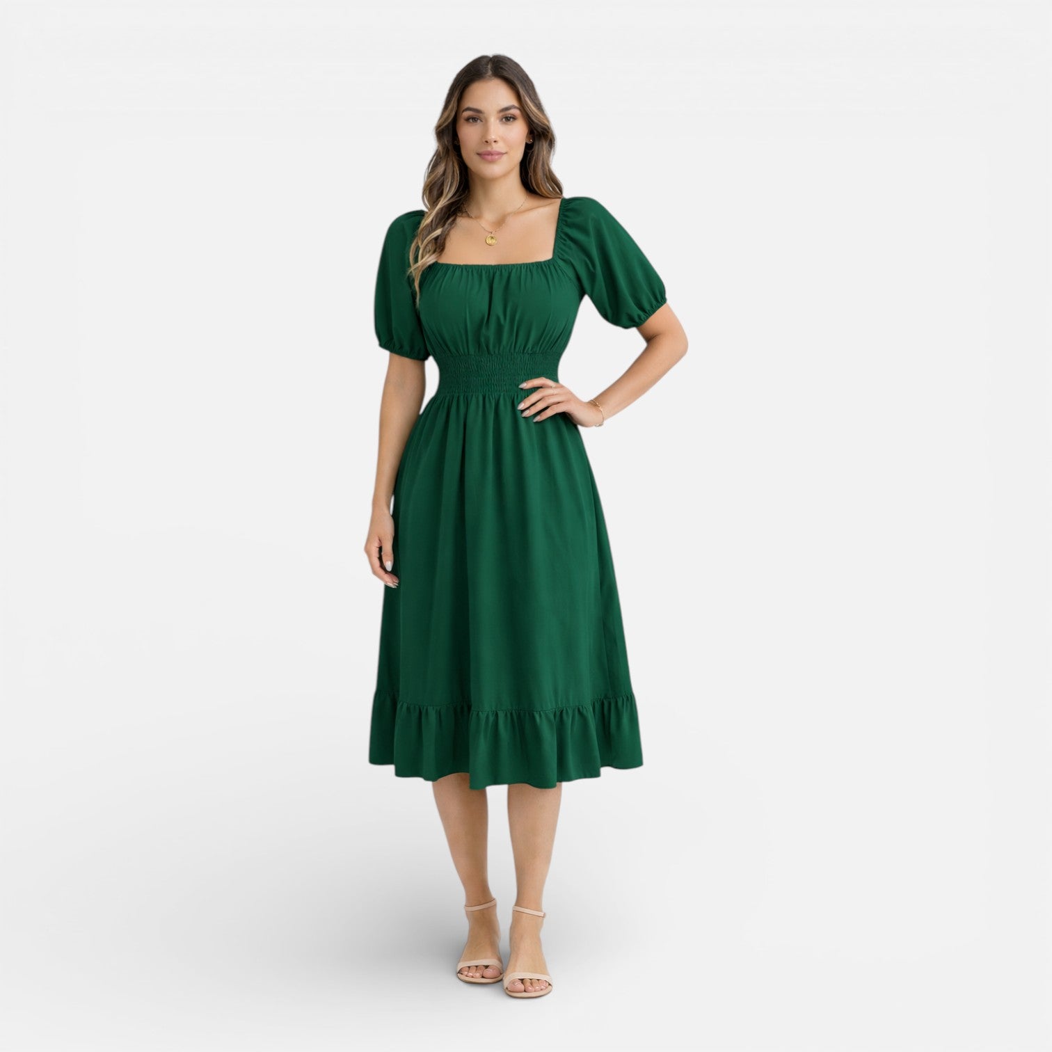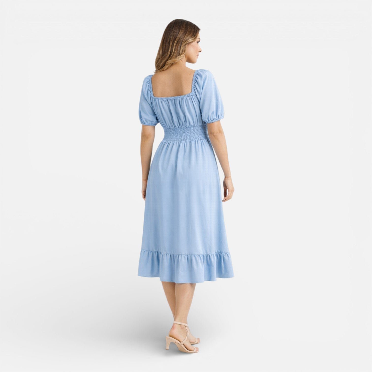 Women’s Square Neck Midi Dress Smocked Waist A-Line Summer