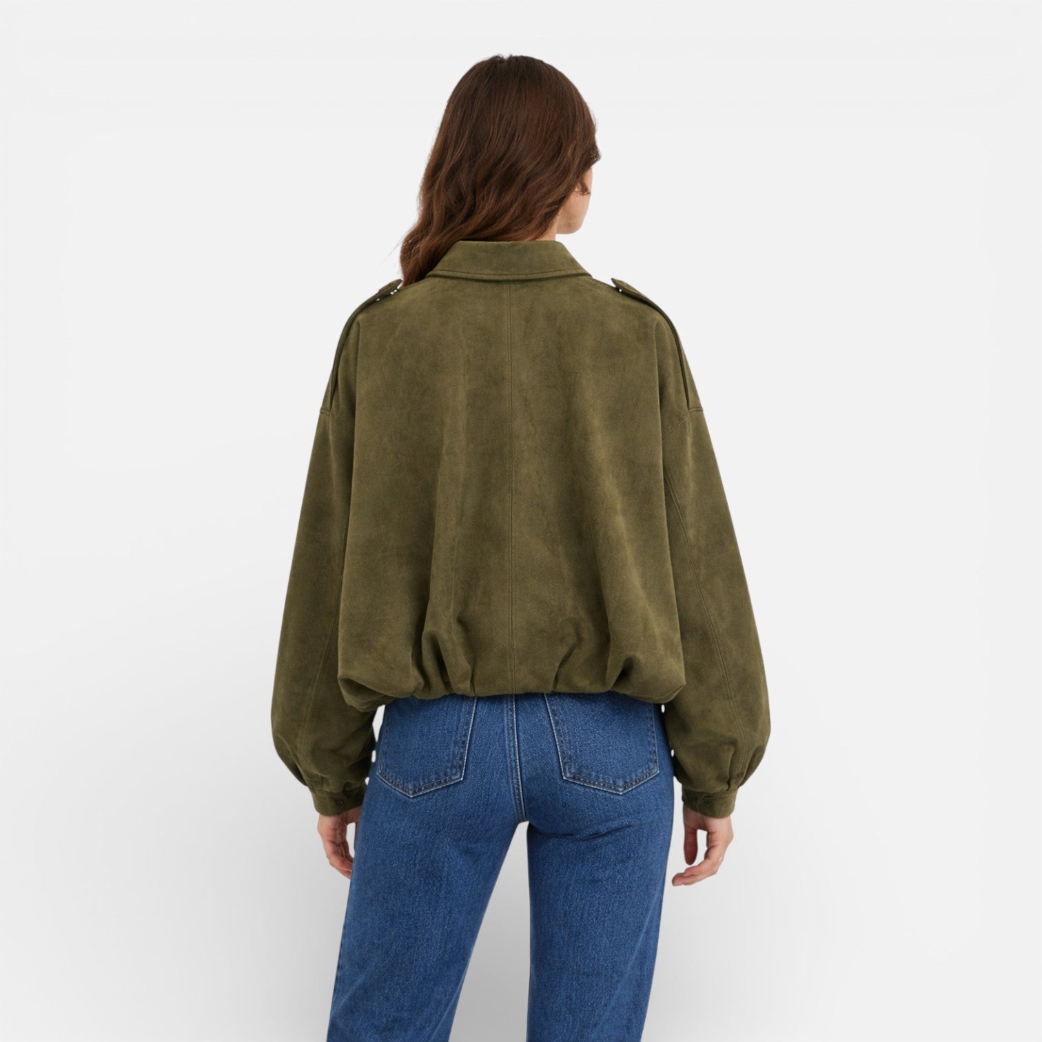Women’s Suede Bomber Jacket – Classic Oversized Fit