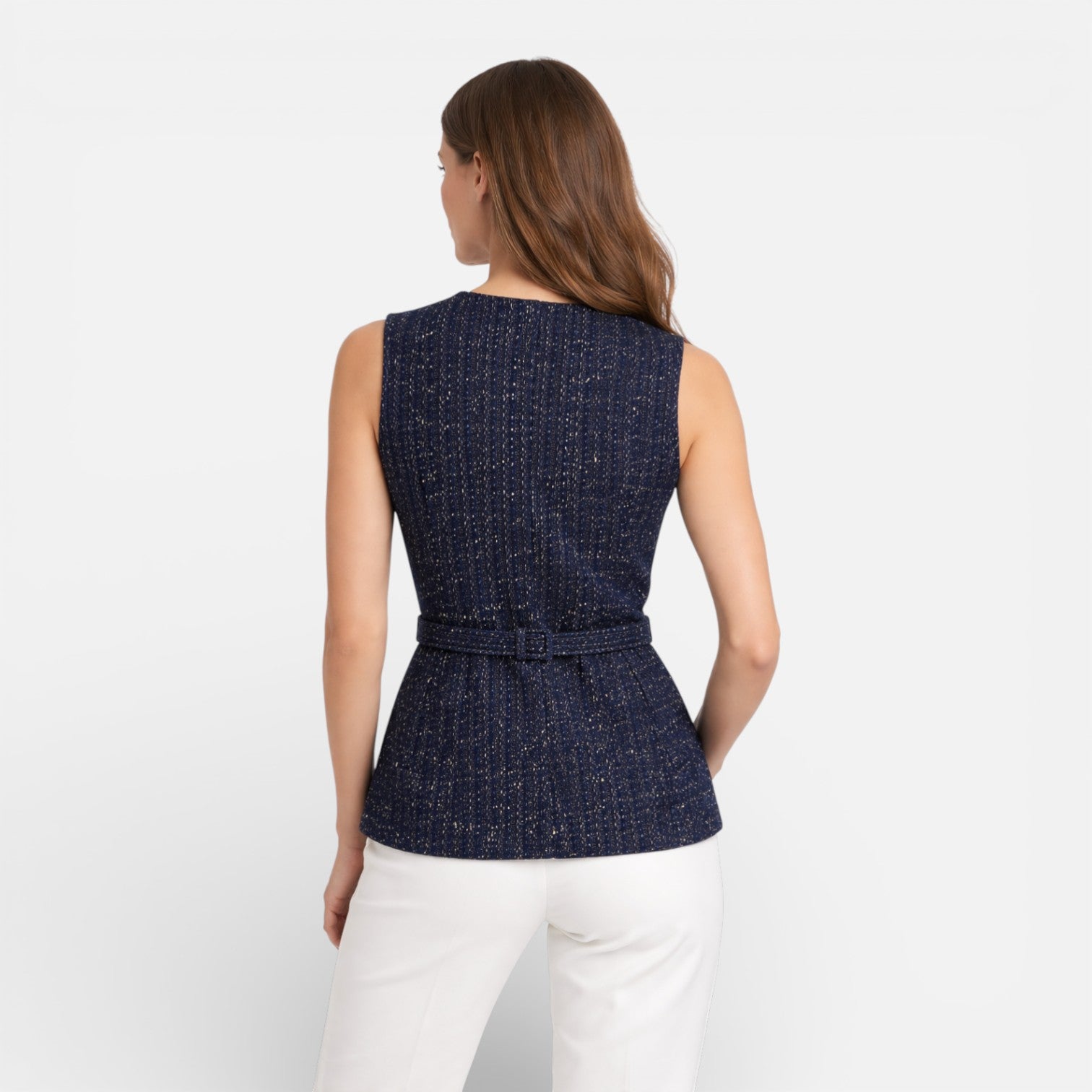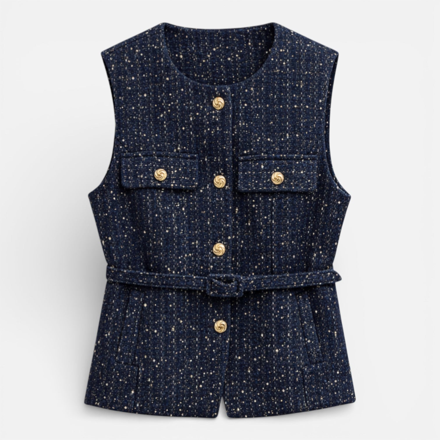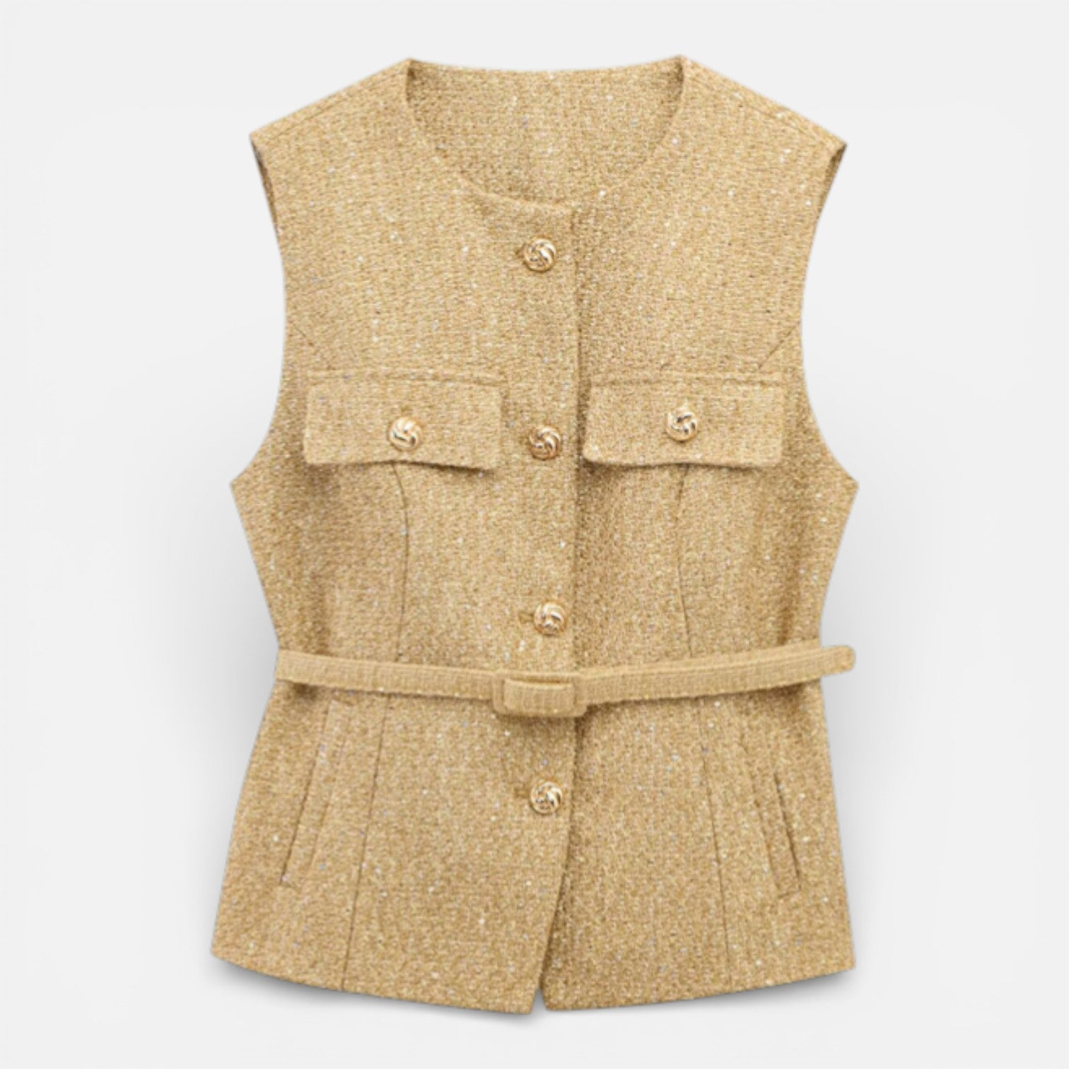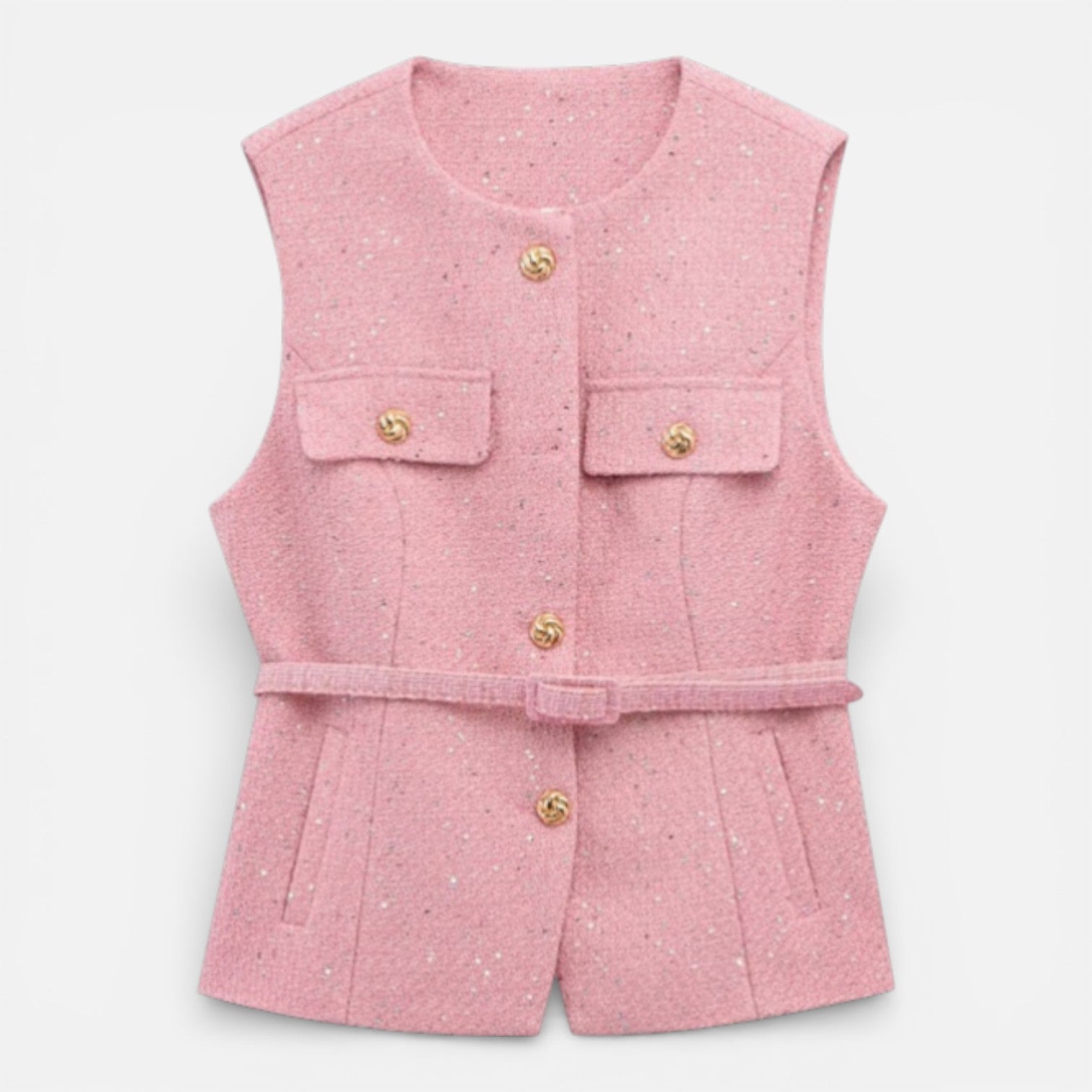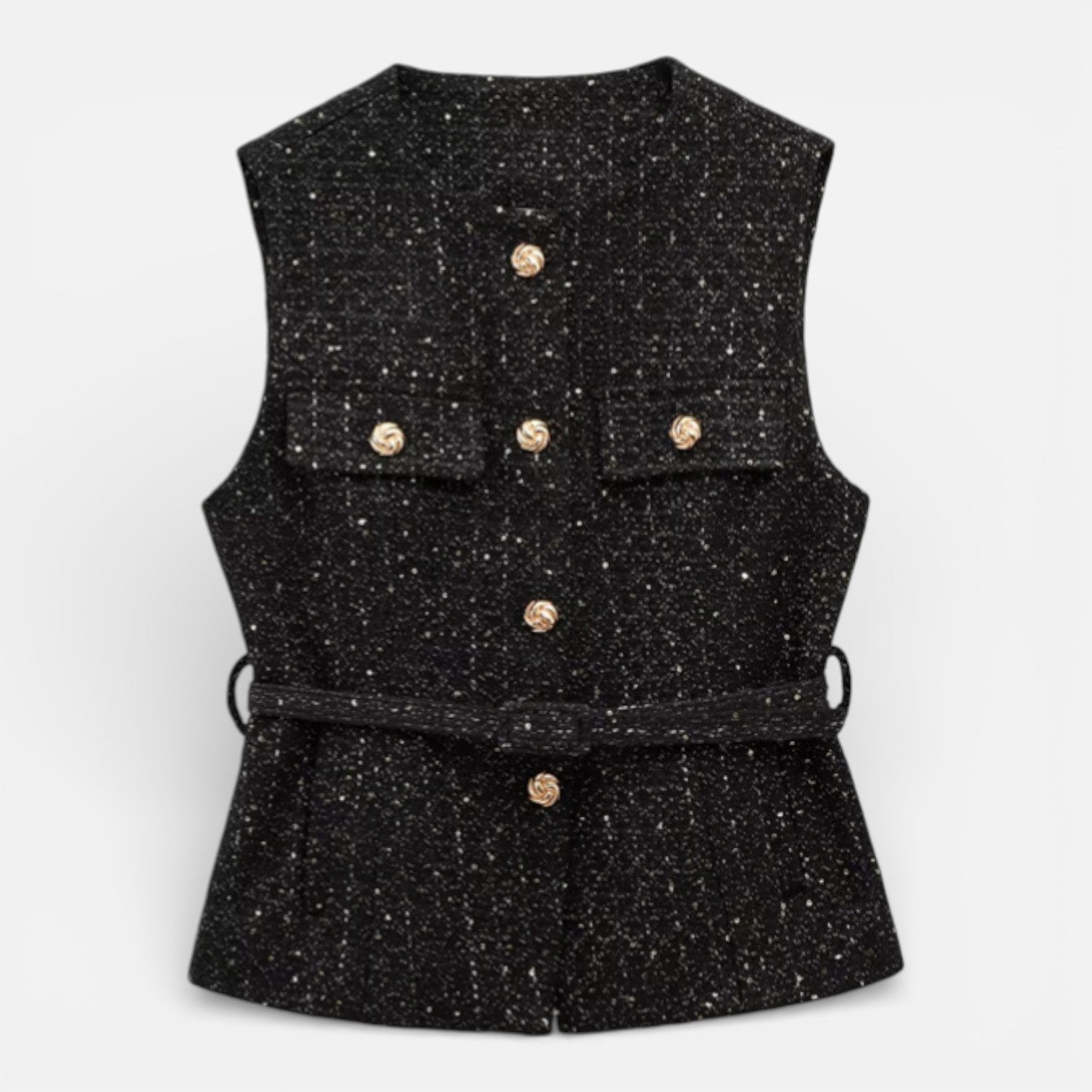 Women’s Tweed Waistcoat Belted Sleeveless Button Front Vest