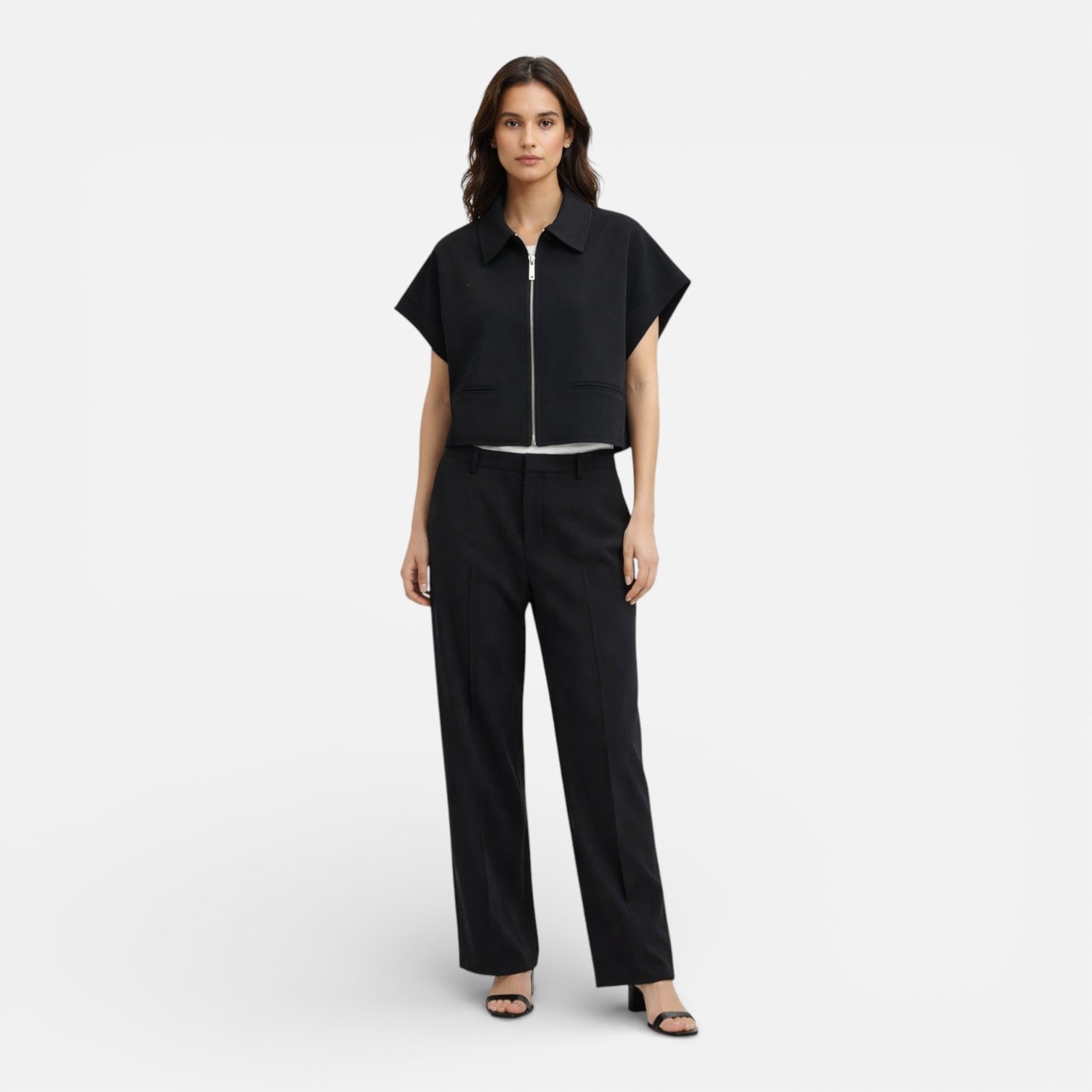 Women’s Two Piece Outfit Set Wide Leg Pants Zip Top Summer