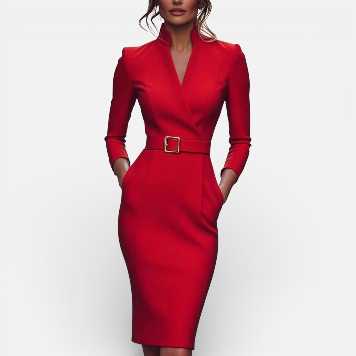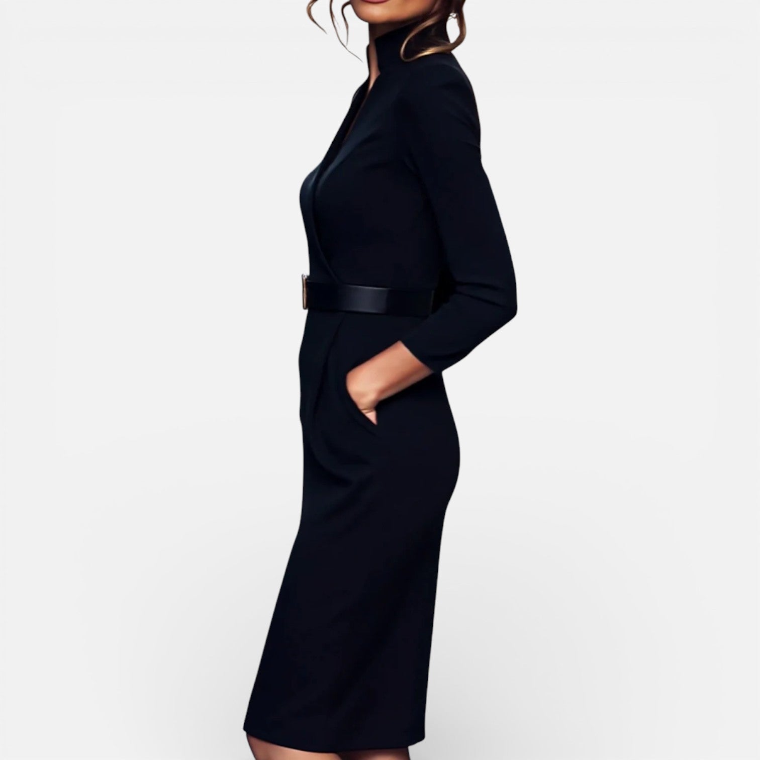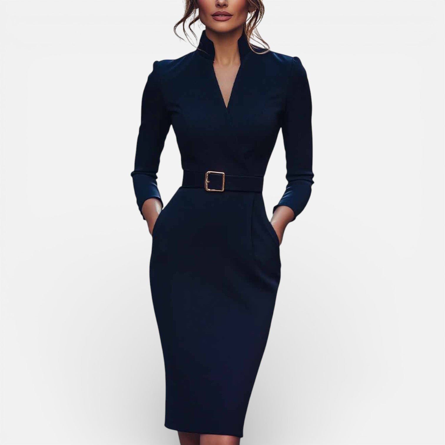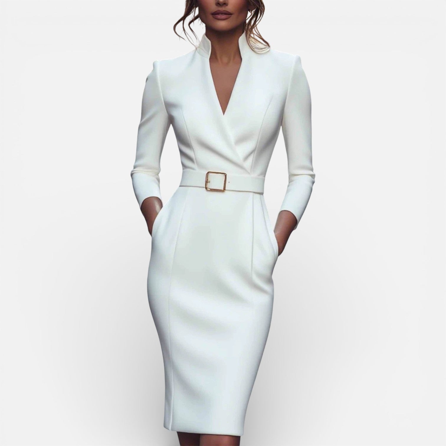 Damesjurk met ceintuur en mandarijnkraag Gestructureerde pasvorm Klassieke zakelijke stijl